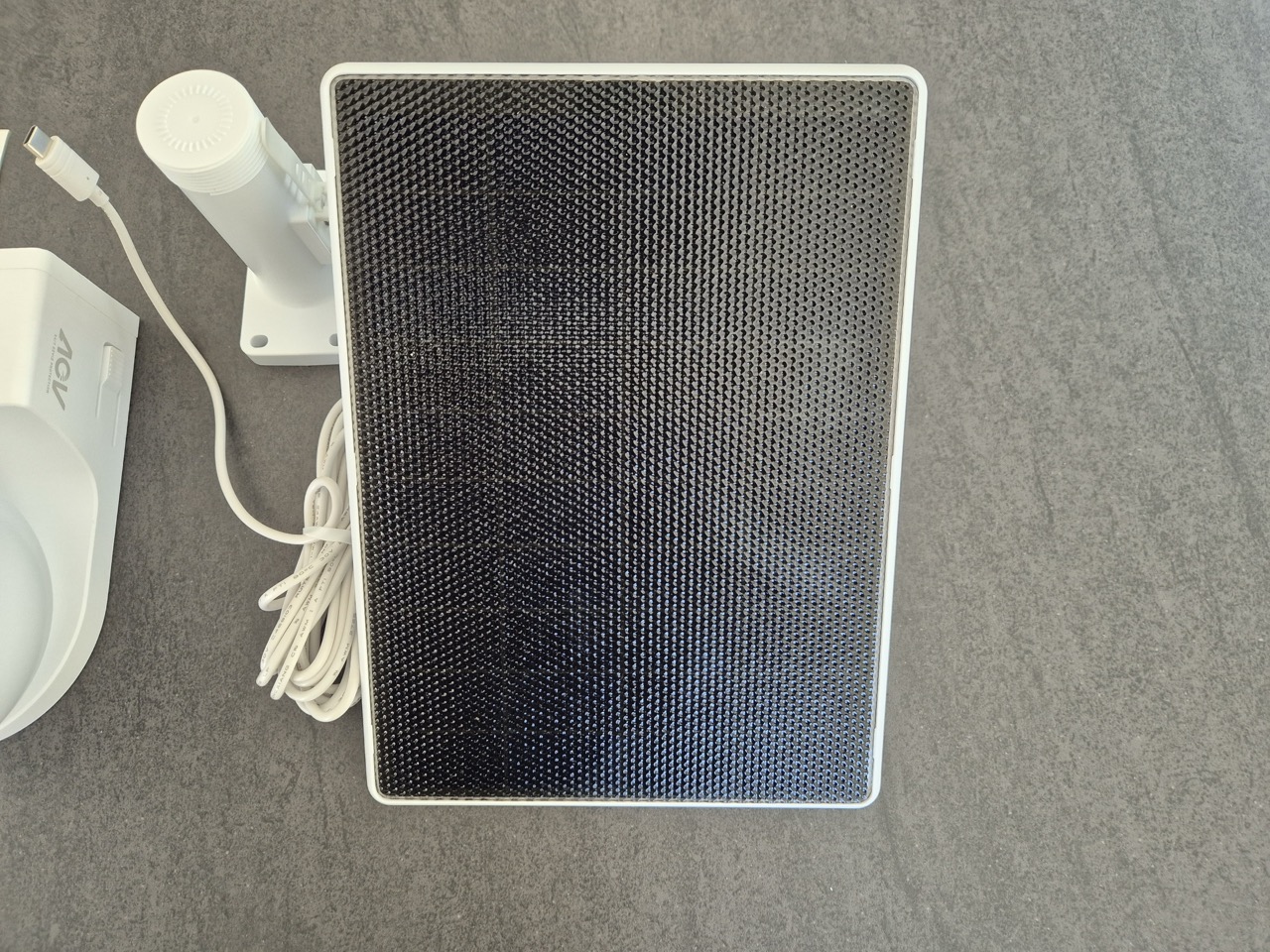 Die Kabel sind ausreichend lang. Dass kein Netzteil beiliegt, ist für ein Solar-Kit nachvollziehbar, für die Erstladung aber unpraktisch. An einem schattigen Standort oder bei wenig Sonneneinstrahlung dürfte das Solarpanel an seine Grenzen stoßen – hier wäre ein zusätzliches Netzteil als Backup empfehlenswert.