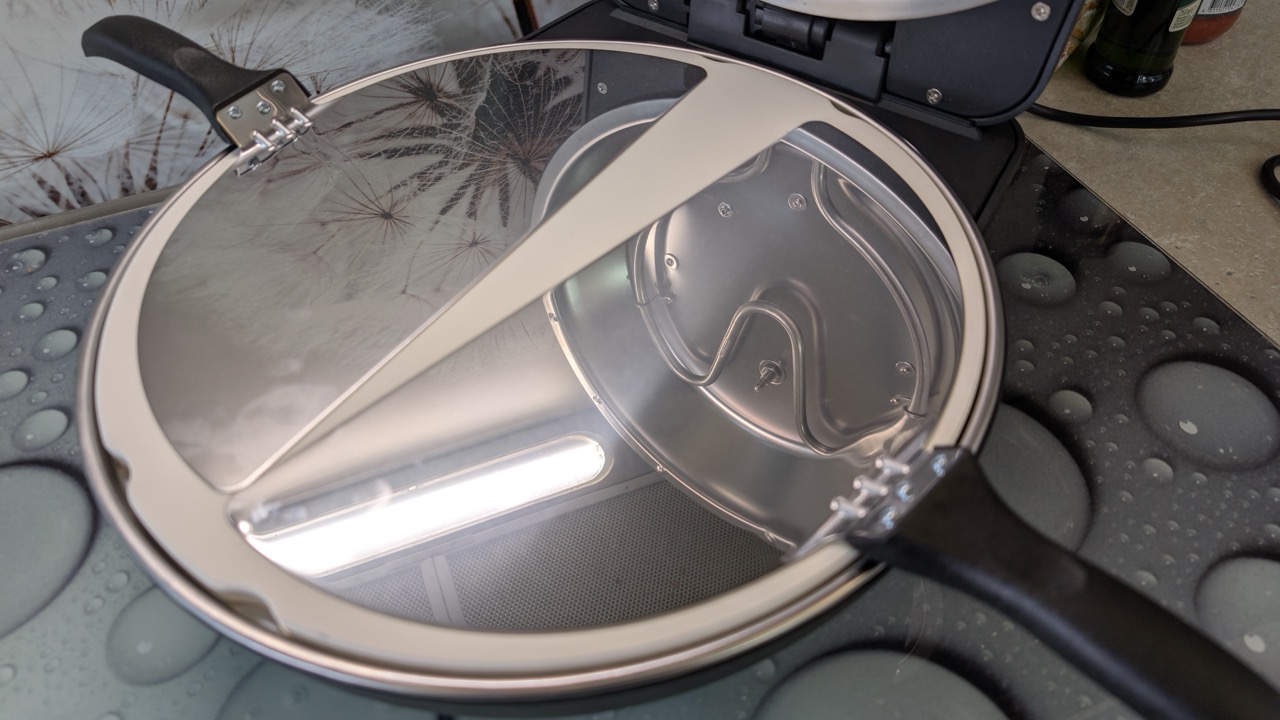Die gedämpfte Schließfunktion des Deckels sorgt für einen sanften Bewegungsablauf beim Öffnen und Schließen. Ein kleiner Kritikpunkt bleibt aber: Der Deckel hält seine Position nicht vollständig, wenn er halb geöffnet ist, und fällt gelegentlich von selbst wieder zu. Für den Betrieb bei hohen Temperaturen ist das ein kleiner, aber relevanter Nachteil. Insgesamt hinterlässt die Verarbeitung dennoch einen sehr hochwertigen Eindruck.
