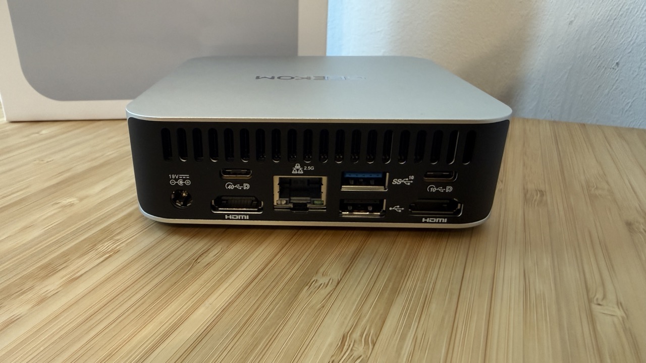„GEEKOM A8“: Rückseite mit HDMI USB C USB4 und 2,5 Gigabit LAN