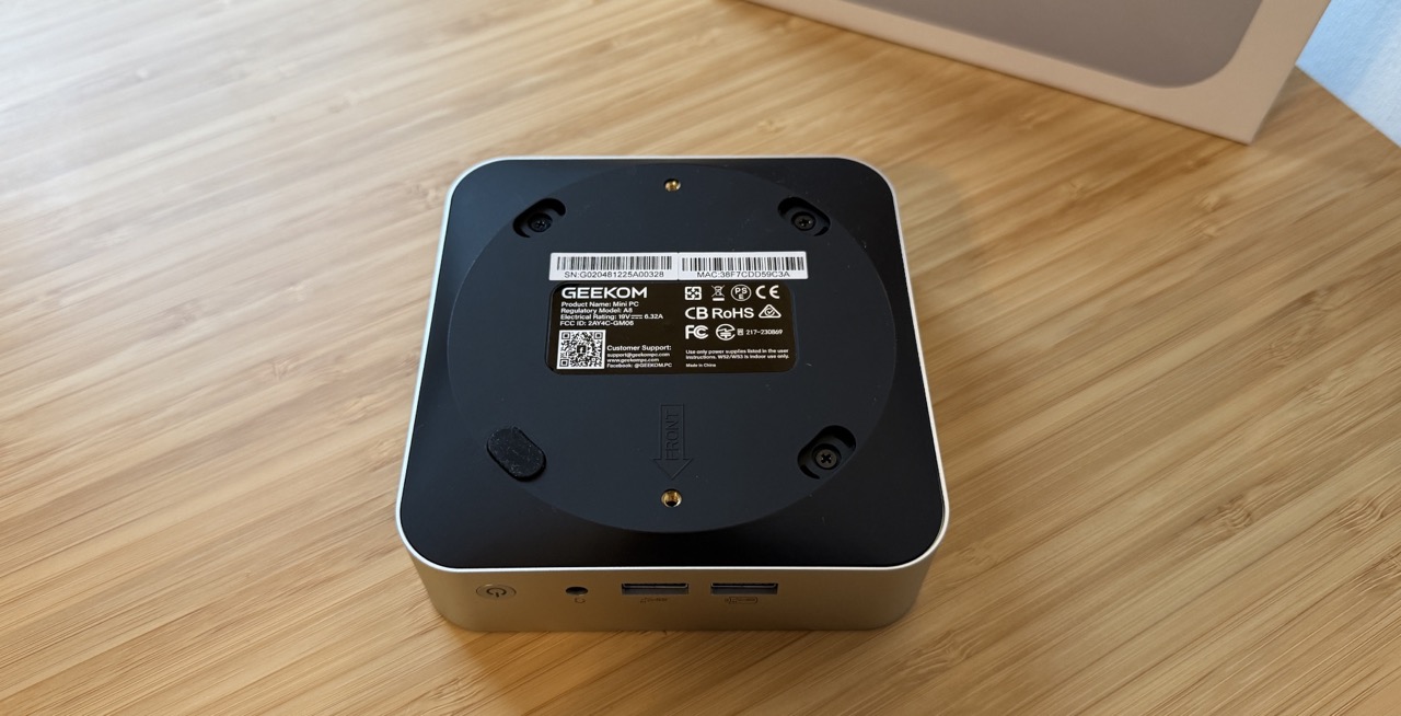 „GEEKOM A8“: Front mit zwei USB A Ports Klinke und Power Taste