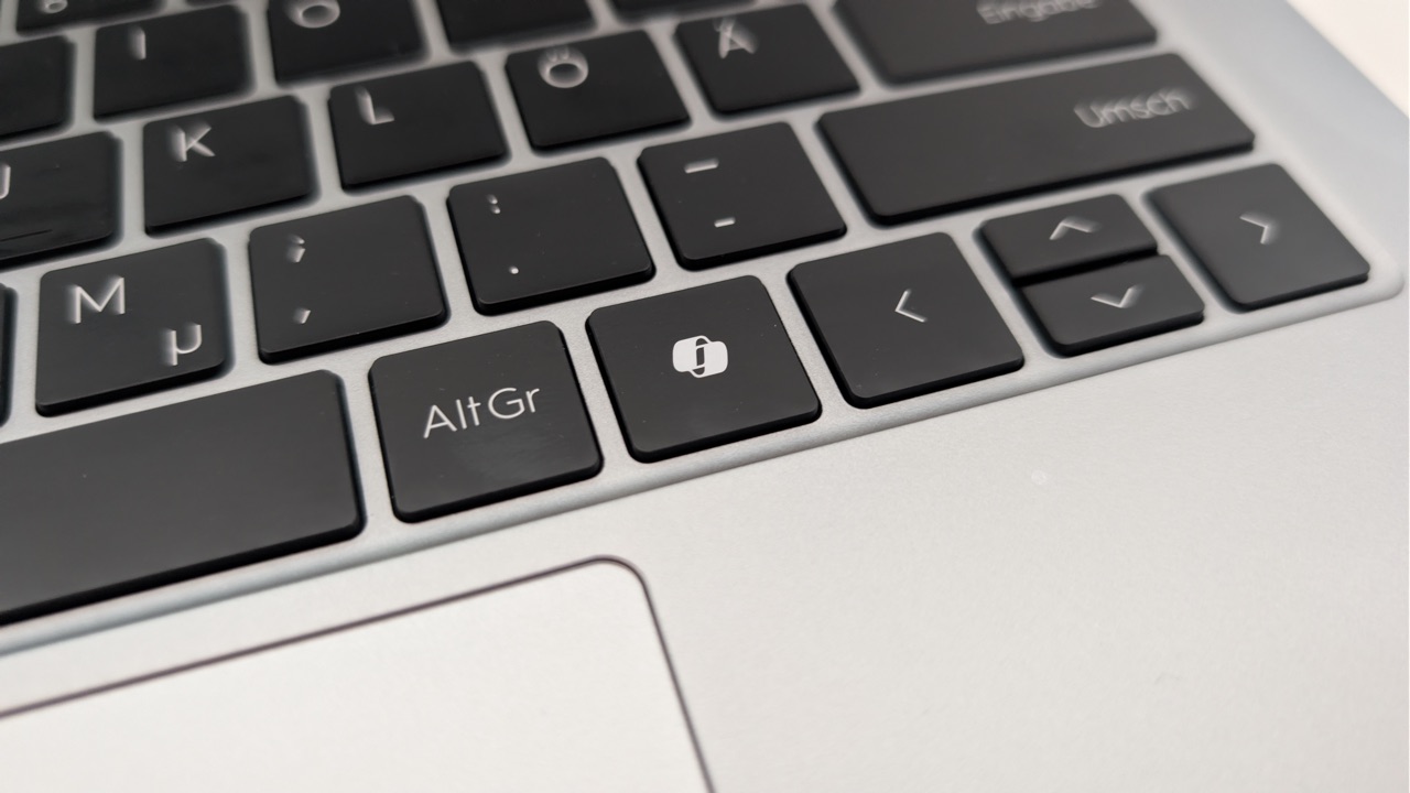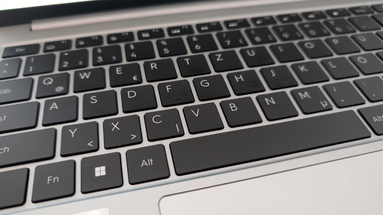 Die Tastatur macht insgesamt einen sehr guten Eindruck, auch wenn das Layout etwas gewöhnungsbedürftig ist. Grundsätzlich ist die Anordnung sinnvoll, allerdings sitzt die Hashtag-Taste über der Enter-Taste und teilt sich dort quasi den Platz, der üblicherweise der Enter-Taste gehört. Das fühlt sich anfangs ungewohnt an und kann in den ersten Tagen zu Fehleingaben führen. Zusätzlich gibt es eine Copilot-Taste an einer Stelle, an der normalerweise rechts die zweite Steuerungstaste liegt.