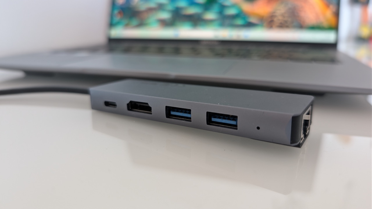 Einen LAN-Port gibt es nicht direkt am Gerät. Im Lieferumfang liegt jedoch ein kleiner Hub, der einen LAN-Port bereitstellt und zusätzlich USB-C mit Power Delivery, einen weiteren HDMI-Port sowie 2 zusätzliche USB Typ-A Ports bietet.