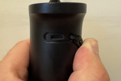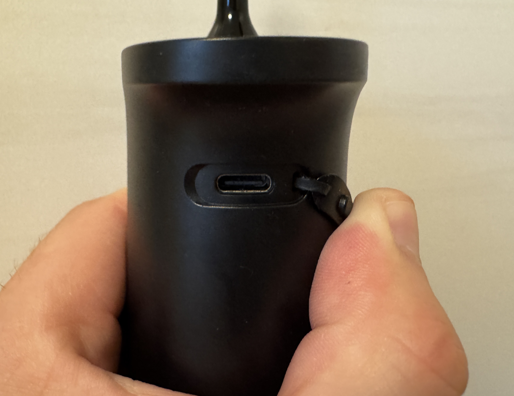 Geladen wird das Gerät über einen USB-C-Port, ebenfalls mit einer Lasche geschützt. Ein passendes Kabel liegt bei, auf eine separate Ladestation verzichtet happybrush. Damit ist die Munddusche flexibel und auch auf Reisen leicht aufzuladen.