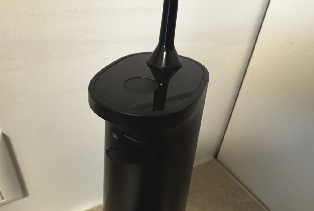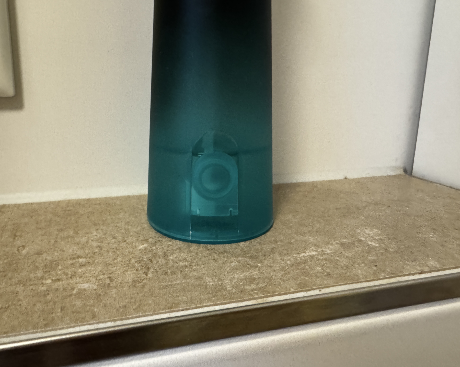 Der Wassertank ist groß genug, um eine Reinigungsdauer von rund zwei Minuten zu ermöglichen – ein sehr guter Wert für ein tragbares Modell. Über eine praktische Öffnung auf der Rückseite lässt sich die Munddusche problemlos befüllen. Eine flexible Lasche verschließt die Öffnung nach dem Gebrauch sicher. Dies verhindert sowohl unbeabsichtigtes Auslaufen als auch das Eindringen von Schmutz.