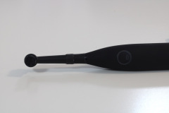 Der Sensitivmodus arbeitet sanfter und eignet sich hervorragend für empfindliches Zahnfleisch. Der Poliermodus hingegen bietet kurze, intensive Bewegungen, die für eine zusätzliche Reinigung sorgen und die Oberfläche der Zähne etwas glänzen lassen. Der Bürstenkopf ist für eine rotierende Zahnbürste recht kompakt gehalten. Dennoch müssen Nutzerinnen und Nutzer den Mund etwas weiter im Vergleich zu einer Schallzahnbürste öffnen. Trotzdem kommen wir auch gut zu den hinteren Backenzähnen.