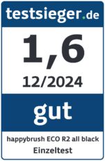 Die happybrush ECO R2 all black überzeugt als leistungsstarke elektrische Zahnbürste. Die Reinigungsleistung gefällt uns, und der Bürstenkopf passt sich gut an die Zahnreihen an. Mit 3 Wochen Laufzeit geht die Akkulaufzeit absolut in Ordnung. Das moderne Design und die hochwertige Verarbeitung gefallen uns ebenfalls. Einzig die ungenaue Akkuanzeige, die lange Ladezeit und der unserem Empfinden nach etwas zu harte Bürstenkopf schmälern das Gesamtergebnis leicht. Von uns gibt es trotzdem eine Kaufempfehlung.