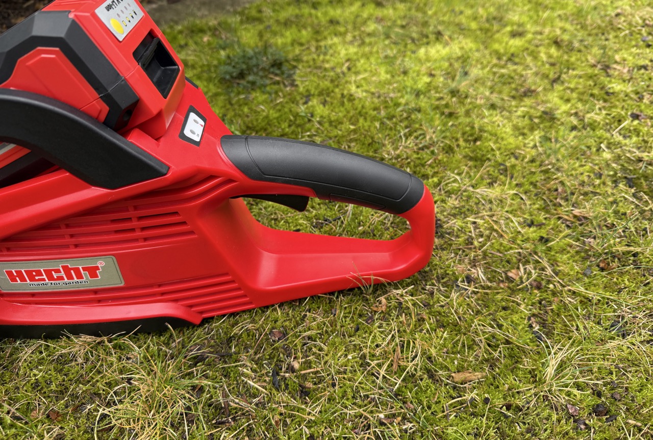 Der eingesetzte Akku gehört zur 40-Volt-Serie 5040 von Hecht und bietet eine 4-stufige Kapazitätsanzeige. Alle anderen 40-Volt-Geräte des Herstellers lassen sich ebenfalls mit diesem Akku nutzen – sehr gut.