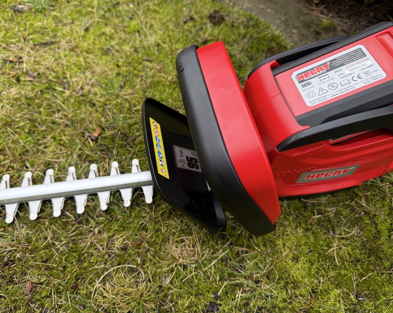 Die Motorleistung ist mit 40-Volt für eine Akku-Heckenschere sehr hoch. Das Getriebe arbeitet zuverlässig und überträgt die Leistung effizient auf die Messer. So können wir auch größere Hecken schneiden.