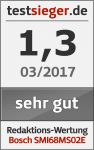 Bosch nennt den SMI68MS02E einen SuperSilence-Geschirrspüler. Wie der Name schon vermuten lässt, soll er unter anderem durch einen extrem leisen Betrieb punkten. Wer schon einmal unter dem Dauerlärm eines laut vor sich hin brummenden Geschirrspülers gelitten hat, weiß, welch ein Segen das sein kann. Testsieger.de hatte die Möglichkeit, die integrierbare Spülmaschine ausführlich zu testen und verrät, ob der SMI68MS02E saubere Arbeit leistet oder der Schmutz die Oberhand behält.