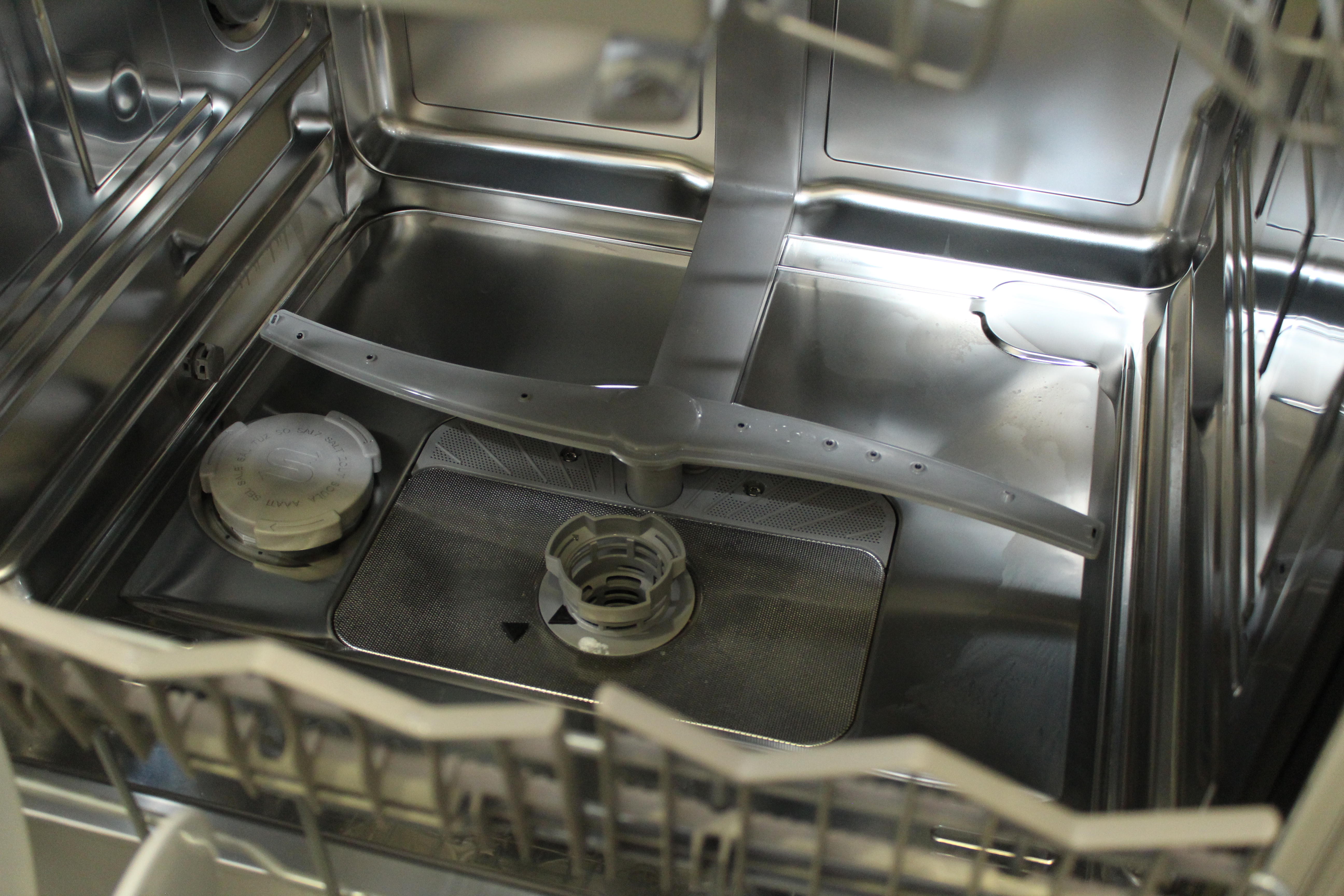 Die Tür des Bosch SMI68MS02E lässt sich sehr leicht öffnen und rastet auch wieder satt ein. Zudem bleibt sie auch offen, wenn der Unterkorb nicht herausgefahren ist – ein großer Vorteil gegenüber vielen anderen Geschirrspülern. Allerdings muss die Tür dazu komplett nach unten gedrückt werden. Ist dies nicht der Fall, geht sie von alleine wieder nach oben. Der Schiebedeckel der Reinigerkammer ist sehr leichtgängig und schließt dennoch fest. Das gleiche gilt für den Vorratsbehälter für Klarspüler.
