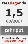 Dass Haushaltsgeräte längst im digitalen Zeitalter angekommen sind, zeigt die Bosch WAYH2840. Die Waschmaschine verfügt beispielsweise über ein integriertes WLAN-Modul und lässt sich damit per Smartphone oder Tablet fernsteuern. Zudem kommt der Frontlader mit dem von Bosch bekannten automatischen Dosiersystem i-DOS. Hier nimmt sich die Waschmaschine nur so viel Flüssigwaschmittel wie sie gerade benötigt. Ob auch die Waschergebnisse stimmen, zeigt unser ausführlicher Test.