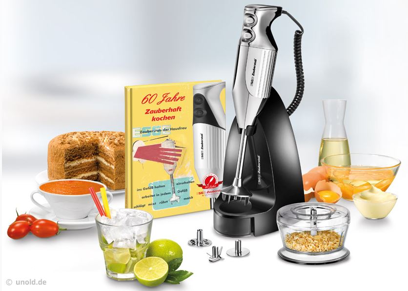 Im Jahr 1954 bringt das schweizerische Unternehmen ESGE den ersten Stabmixer unter dem Namen ESGE-Zauberstab® auf den Markt. Unter dem Markennamen wird häufig die komplette Produktgruppe zusammengefasst. Allein daran kann man den Erfolg ablesen. Pünktlich zum 60-jährigen Bestehen veröffentlichte das Unternehmen 2014 eine spezielle Jubiläums-Edition des ESGE-Zauberstabs®. In Deutschland übernimmt 1990 die UNOLD AG den Alleinvertrieb. Wir klären, ob man dem Stabmixer etwaige Alterserscheinungen anmerken kann.