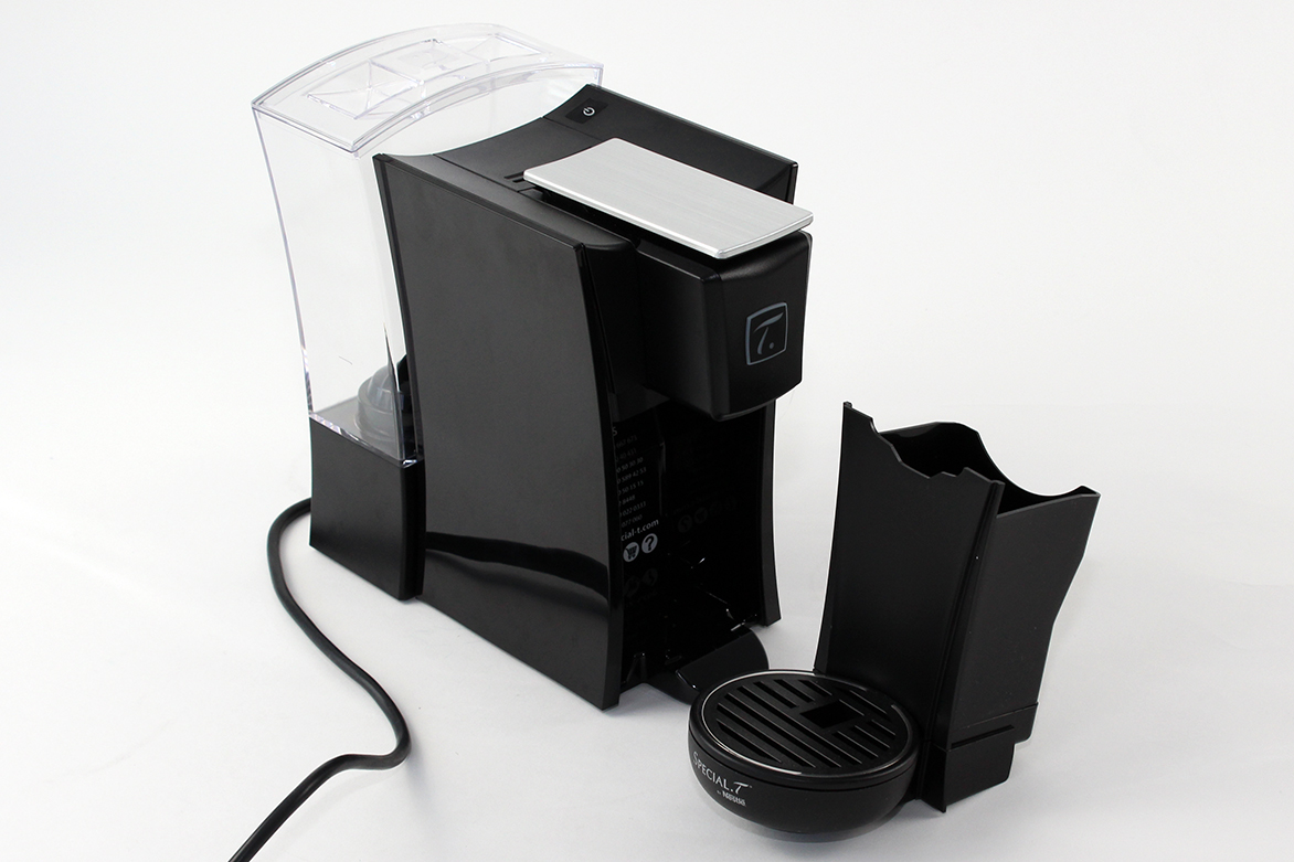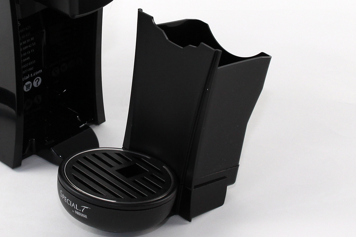Das benötigte Wasser lässt sich in den Tank an der Hinterseite einfüllen. Mit einem Volumen von 1,3 Litern lassen sich etwa 6 – 7 Tassen Tee aufbrühen. Praktischerweise befindet sich ein Wasserfilter im Lieferumfang, der sich problemlos einsetzen lässt. Laut Nestlé beseitigt der Filter einen Großteil des im Leitungswasser enthaltenen Chlors und Kalks, damit der Käufer sich auf unverfälschten Teegenuss freuen kann. Die Maschine lässt sich aber auch ohne Weiteres ohne den Einsatz verwenden. Der Deckel des Wassertanks sitzt fest, lässt sich jedoch sehr einfach abnehmen und wieder aufsetzen. Ist der Tee fertig zubereitet, muss der Nutzer den Hebel wieder öffnen und die Kapsel fällt automatisch in eine Auffangschale, die ungefähr sieben Dosen Platz bietet.