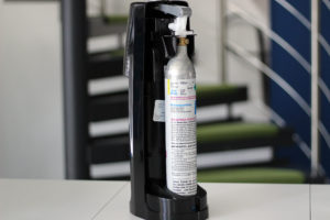 Der Easy verfügt nur über eine große Taste zum Aufprudeln an der Oberseite. Der Knopf muss nicht unbedingt komplett durchgedrückt werden, damit das Wasser mit Kohlensäure versetzt wird. Wir empfehlen es trotzdem, da sich so am schnellsten ein Gefühl für den gewünschten Kohlensäuregehalt einstellt. Die Taste lässt sich auch betätigen, wenn sich keine Flasche in der Halterung befindet. Hier wäre ein zusätzlicher Sicherheitsmechanismus schön gewesen.
