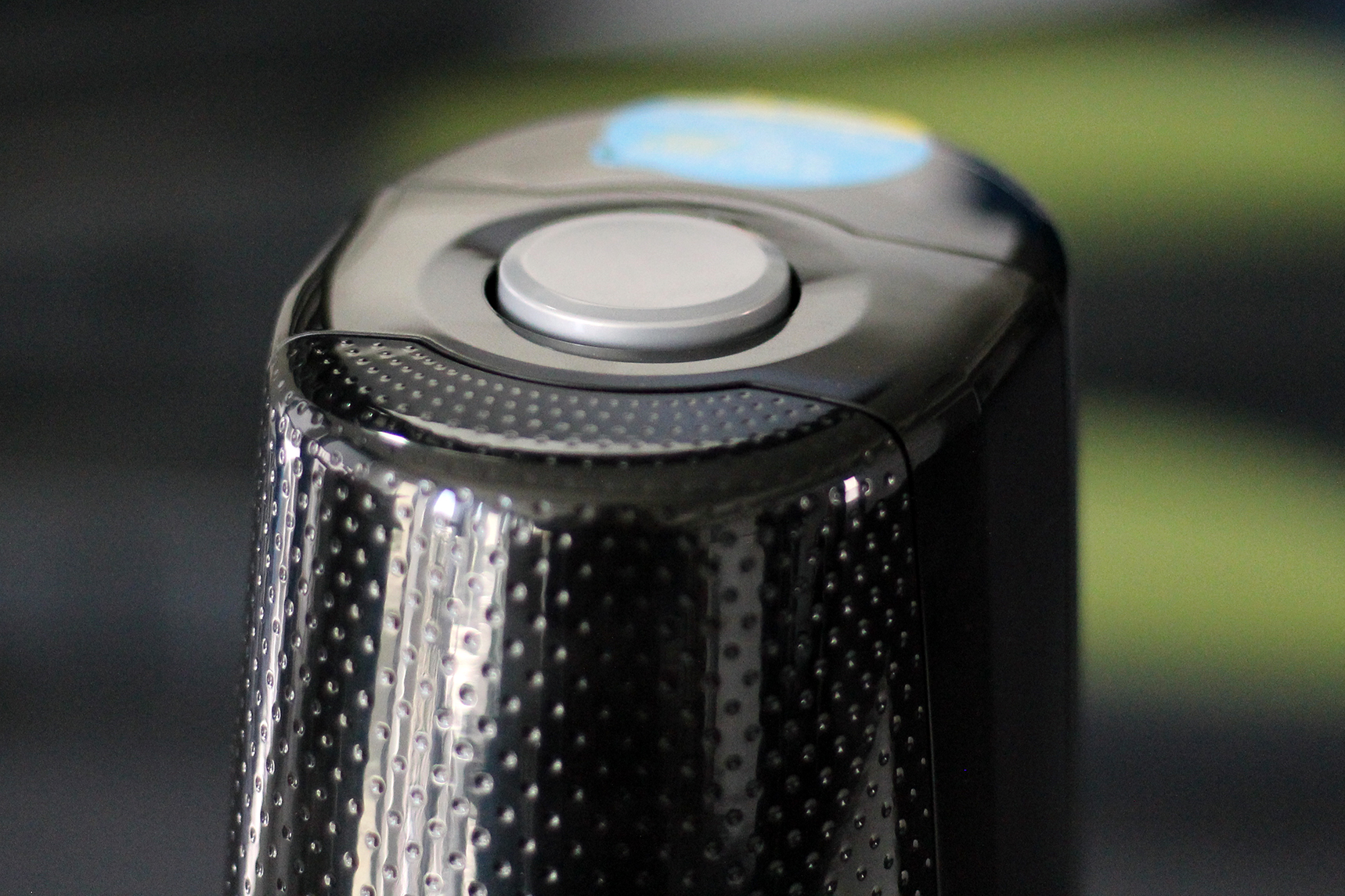 Der Easy verfügt nur über eine große Taste zum Aufprudeln an der Oberseite. Der Knopf muss nicht unbedingt komplett durchgedrückt werden, damit das Wasser mit Kohlensäure versetzt wird. Wir empfehlen es trotzdem, da sich so am schnellsten ein Gefühl für den gewünschten Kohlensäuregehalt einstellt. Die Taste lässt sich auch betätigen, wenn sich keine Flasche in der Halterung befindet. Hier wäre ein zusätzlicher Sicherheitsmechanismus schön gewesen.