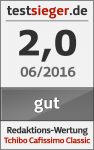 Wie der Name schon sagt, ist die Tchibo Cafissimo Classic der Dauerbrenner im Kapselmaschinen-Sortiment des deutschen Herstellers. Für eine unverbindliche Preisempfehlung von 99 Euro bietet sie eine große Getränkeauswahl. Neben Filterkaffee, Caffè Crema, Espresso und Tee, bereitet die Maschine auch Spezialitäten wie Cappuccino oder Latte Macchiato zu. Testsieger.de hatte die Möglichkeit, die Cafissimo Classic ausführlich zu testen und verrät unter anderem, wie sich das Gerät in Sachen Design, Bedienung und Geschmack schlägt.