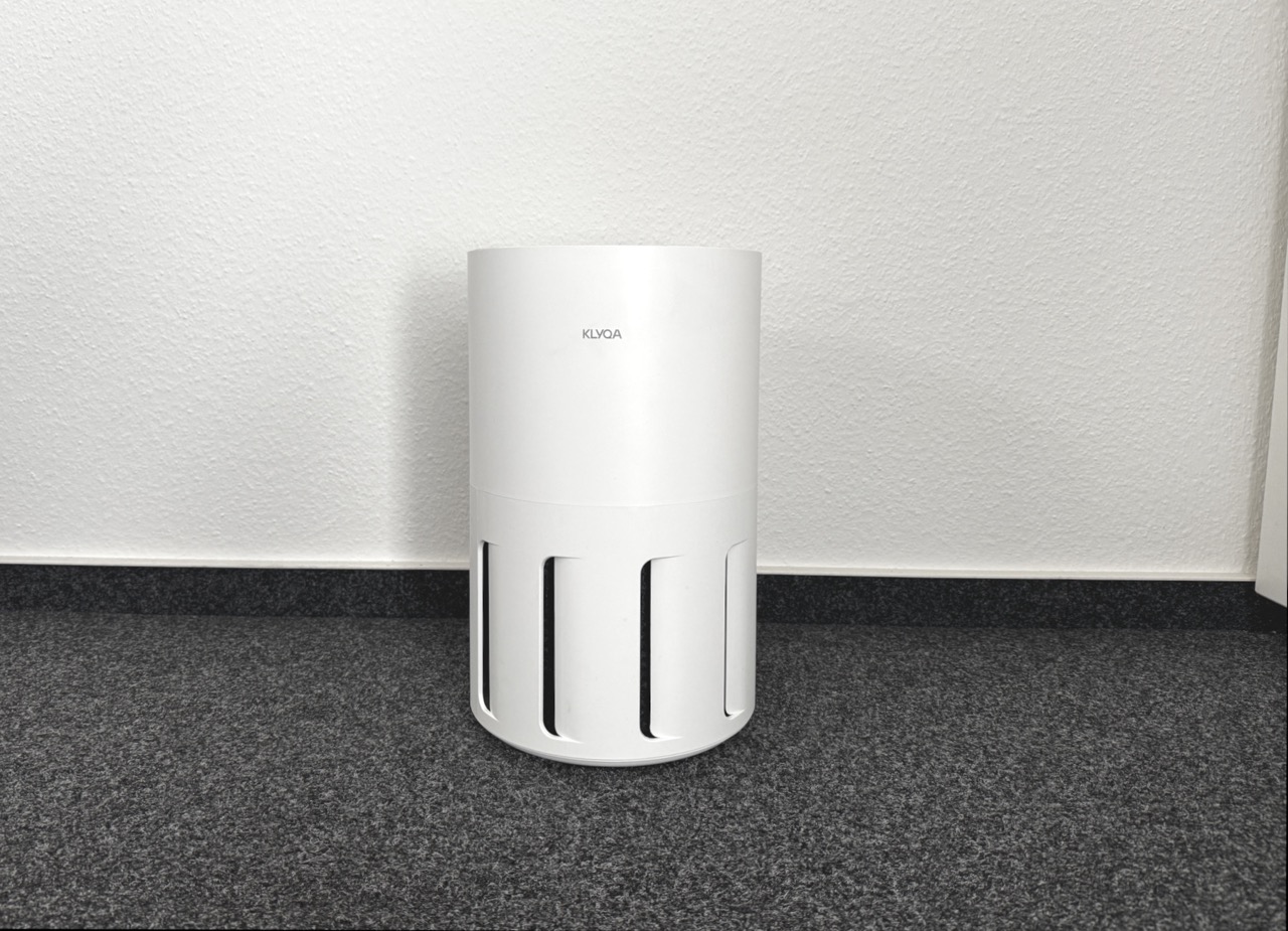 Die vom Hersteller empfohlene Raumgröße beträgt 78 Quadratmeter. In unserem 70 Quadratmeter großen Büroraum gelingt es dem Klyqa problemlos, die Luft dauerhaft sauber zu halten. Auch Allergikerinnen und Allergiker bestätigen eine spürbare Verbesserung der Luftqualität. Tierhaare, wie etwa von Hunden, filtert das Gerät ebenfalls zuverlässig aus der Luft.