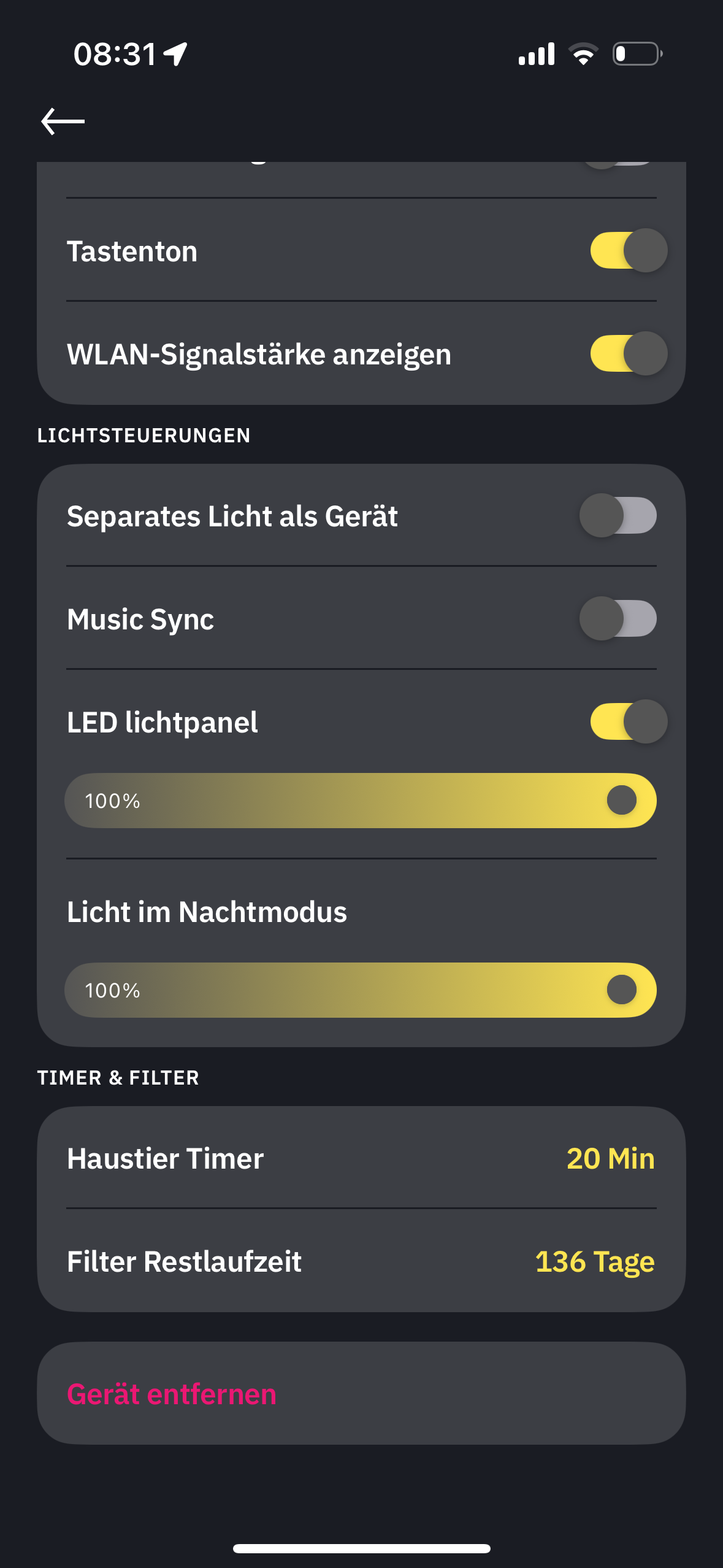 Beim Filter handelt es sich um einen HEPA-13-Filter, der auch feinste Partikel herausfiltert und damit ideal für Allergikerinnen und Allergiker ist. Der Filter ist auswaschbar und wiederverwendbar – ein großer Pluspunkt in puncto Nachhaltigkeit. Laut Hersteller kostet ein Ersatzfilter 34,95 Euro und hält etwa 180 Tage. Über den notwendigen Filterwechsel informieren sowohl die Status-LED als auch die App zuverlässig.