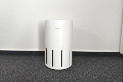 Der Filterwechsel gestaltet sich angenehm einfach. Über einen Drehmechanismus an der Unterseite lässt sich der Luftreiniger ohne Werkzeug öffnen. Der Filter ist danach mit einem Handgriff entnommen und ebenso schnell wieder eingesetzt. Auch die Reinigung der Außenflächen ist unkompliziert: Da das Gehäuse vollständig weiß ist, fällt Staub kaum auf. Ein feuchtes Tuch genügt, um den Luftreiniger sauber zu halten.