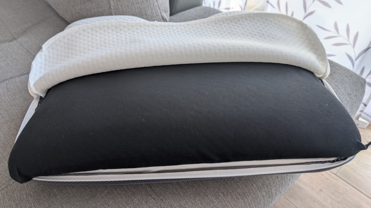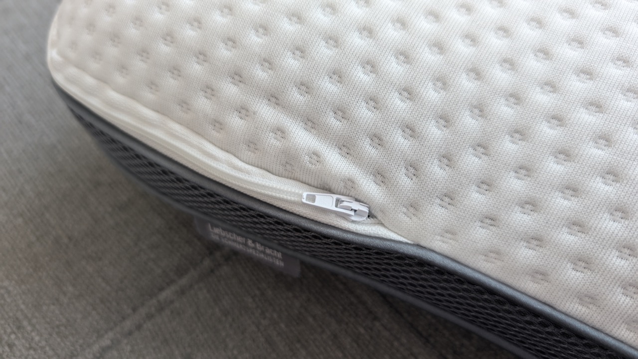 Das Kissen misst 40 Zentimeter in der Länge und 54 Zentimeter in der Breite, bei einer Höhe von entweder 12 bis 10 oder 6 bis 5 Zentimetern, je nach gewählter Lagen-Kombination. Mit einem Gewicht von rund 1,5 Kilogramm (variiert je nach Höhe) liegt es solide auf der Matratze, ohne zu verrutschen. Der Aufbau besteht aus mehreren Schichten: Im atmungsaktiven Bezug steckt eine Lage aus Viscoschaum und eine Memory-Schaumlage. Jede dieser Schichten erfüllt eine klar definierte Aufgabe – von der Feuchtigkeitsableitung über die Druckentlastung bis hin zur Anpassung an die Körperform.Im Praxistest zeigt sich die hohe Qualität sofort. Der Bezug fühlt sich angenehm weich an, wirkt robust und ist sauber verarbeitet. Auch das Belüftungsgitter fällt positiv auf, da es nicht nur hochwertig aussieht, sondern tatsächlich eine gute Luftzirkulation ermöglicht. Die Schaumstoffe passen sich sehr gut an und gehen zuverlässig in ihre Ursprungsform zurück. Der Reißverschluss wirkt stabil und funktioniert ohne Probleme.
