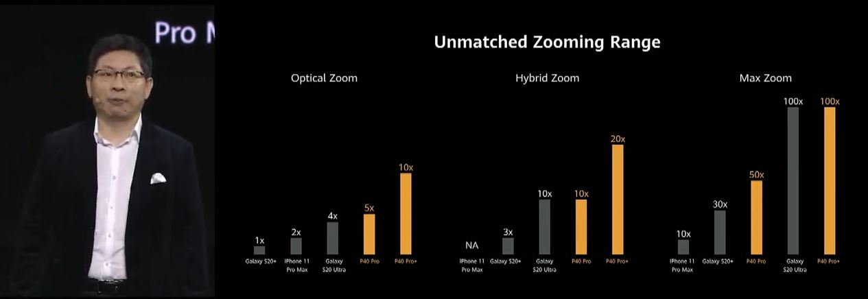 14:26 Uhr: Das Huawei P40 Pro Plus verfügt über einen 3-fach Mid-Range optischen Zoom und einen 10-fach Long-Range-Optical-Zoom.