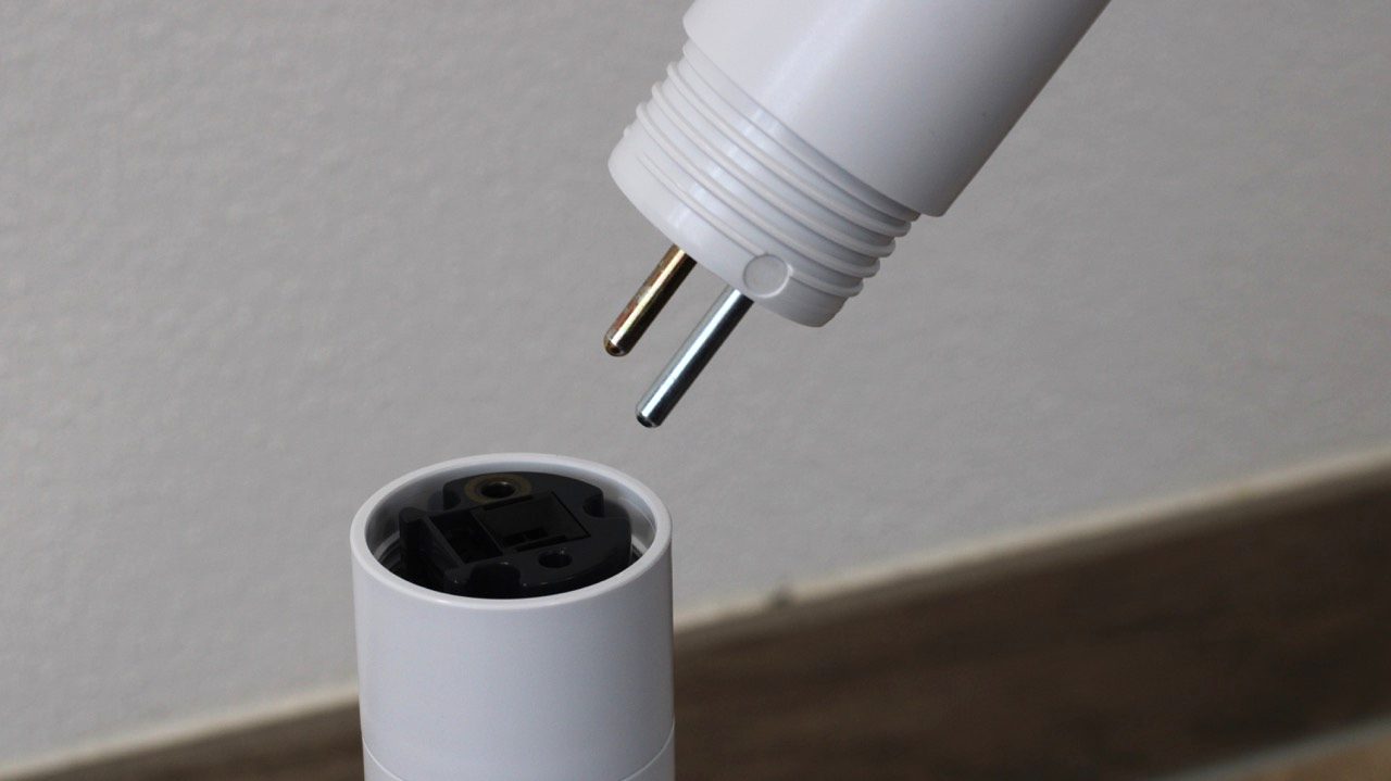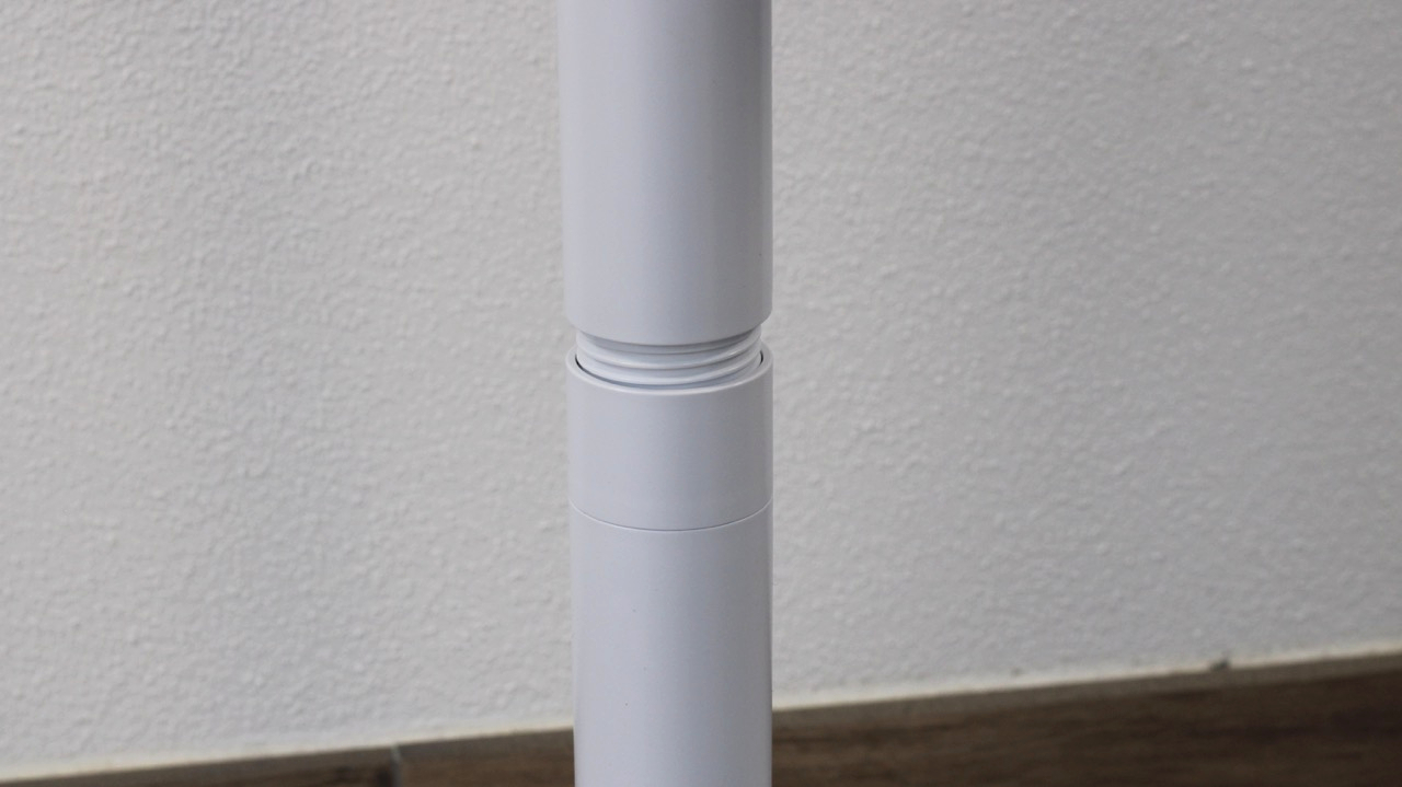 Dank der zwei mitgelieferten Stangenelemente lässt sich der MeacoFan Sefte 10 flexibel nutzen – entweder als Tischventilator oder als großer Standventilator. Der Aufbau gelingt schnell und unkompliziert: Wir stecken die einzelnen Elemente einfach zusammen und fixieren sie anschließend mit einem Schraubgewinde. Die Verbindung hält sicher, sodass nichts wackelt. Beim Zusammenstecken hilft eine farbliche Markierung, um die Elemente korrekt zusammenzuführen.