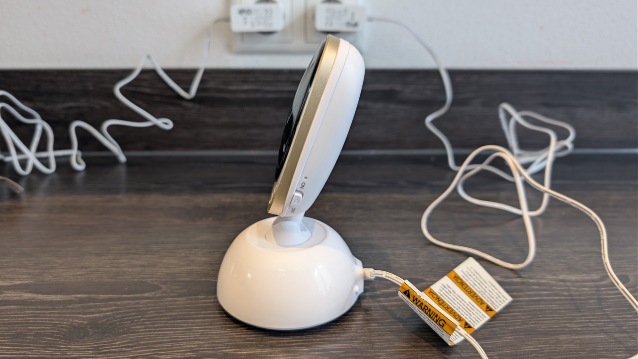 Der größte Haken sitzt allerdings davor: Vor der ersten Nutzung verlangt die Elterneinheit eine Ladezeit von mindestens 16 Stunden. Das bremst den Start aus und passt nicht zum sonst so unkomplizierten Einstieg. Noch dazu sorgt die Ladeanzeige für Verwirrung. Nach dem Anschließen leuchtet eine rote Lampe und bleibt selbst nach über 24 Stunden rot. Im Test zeigt sich, dass diese Farbe nichts über den Ladestand aussagt. Genau das ist irreführend, weil Rot fast automatisch wie ein Warnsignal gelesen wird.