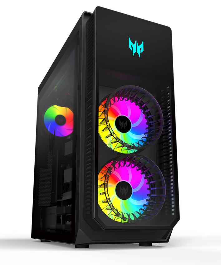 Das EMI-konforme Gehäuse verfügt über transparente Seitenteile aus gehärtetem Glas. Dadurch können Nutzerinnen und Nutzer die in RGB-Farben leuchtenden Lüftungseinheiten sehen. Zwei 140 mm Predator FrostBlade 2.0-Frontlüfter und ein dritter 120 mm Predator FrostBlade 2.0-Lüfter an der Rückseite sollen für einen kühlen Betrieb sorgen. Durch eine Öffnung auf der Oberseite lässt sich der 120-mm-Lüfter auf Wunsch auch gegen einen 240-mm-Lüfter austauschen. Hinzu kommt ein spezielles Luftstrommanagement und ein AIO Flüssigkeitskühler.
