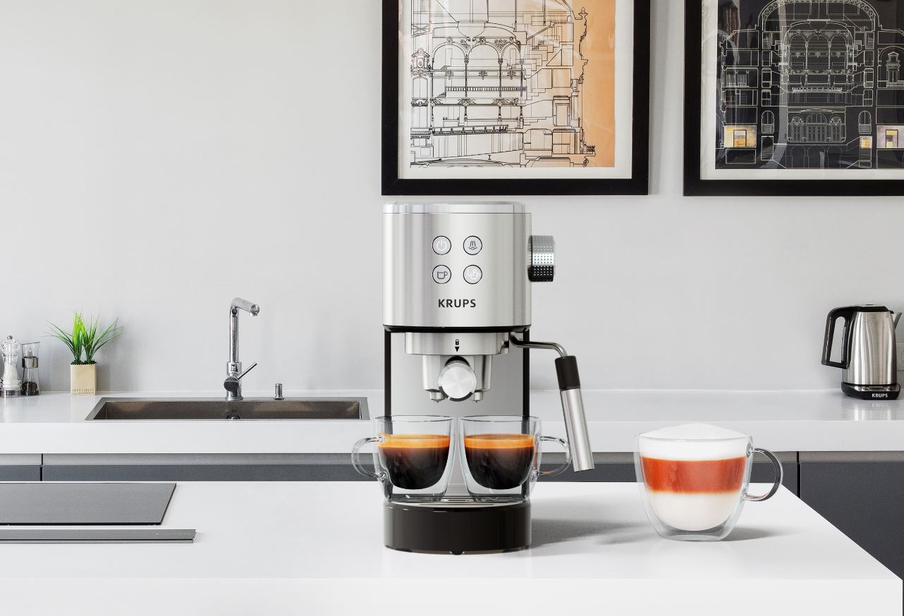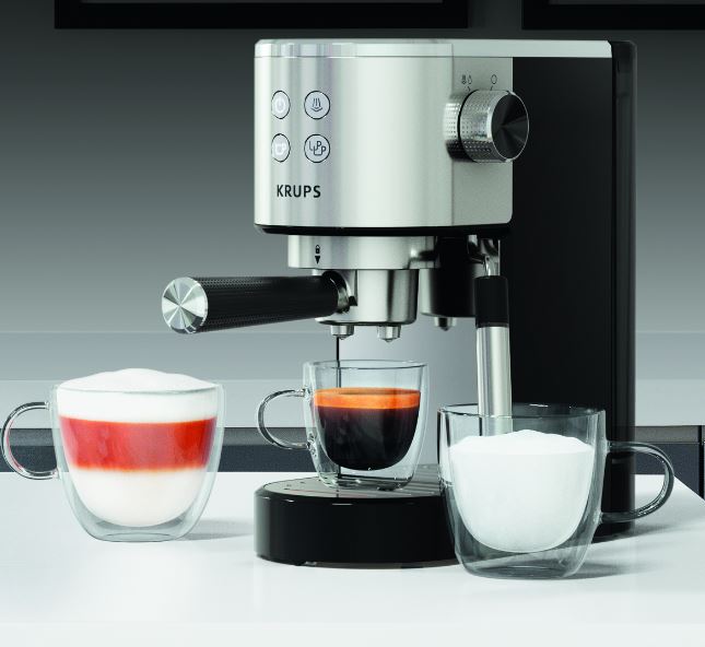 Krups hat eine neue Espressomaschine für April 2021 angekündigt. Das Gerät soll vor allem durch die kompakten Abmessungen punkten und über verschiedene Siebeinsätze verfügen. So hat der Nutzer die Möglichkeit, eine oder zwei Tassen Espresso zuzubereiten. Krups spricht von einer Zubereitungszeit von unter einer Minute. Wer Milchspezialitäten wie Cappuccino zubereiten möchte, freut sich über die integrierte Milchaufschäumdüse aus Edelstahl.