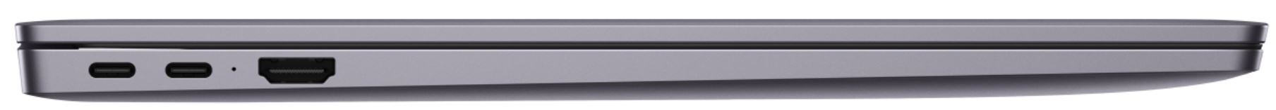 Auf der linken Seite befinden sich laut Huawei ein HDMI-Eingang sowie zwei USB-C-Anschlüsse. Die rechte Seite beherbergt zwei USB-A-3.2-Anschlüsse und einen 3,5-Klinkensteckeranschluss. Der Fingerabdruckscanner ist in den Power-Button integriert und erleichtert das Entsperren des Notebooks. Wie von anderen Notebooks von Huawei in der letzten Zeit gewohnt, ist die Webcam in die Tastatur integriert und lässt sich auf Wunsch nach oben klappen. Dadurch ist der Nutzer gut bei unbefugtem Zugriff geschützt.