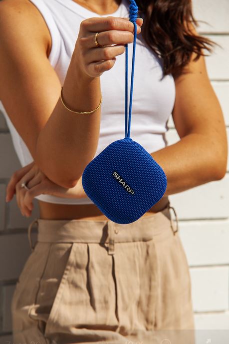 Der Bluetooth-Lautsprecher verfügt über Wasser- und Staubschutz nach IP67-Zertifiierung. Über den angebrachten Trageriemen lässt er sich einfach transportieren. Wer möchte, kann auch zwei Geräte für echten Stereo-Sound koppeln. Laut Sharp soll auch der Bass nicht zu kurz kommen. Dafür soll der passive Bass-Radiator sorgen. Der integrierte Lithium-Ionen-Akku besitzt eine Kapazität von 1.800 mAh. Das soll für eine Laufzeit von bis zu 13 Stunden am Stück reichen. Geladen wird der Lautsprecher über den integrierten microUSB-Anschluss. Für externe Geräte steht ein 3,5-mm-AUX-Anschluss zur Verfügung. Dank Mikrofon ist auch telefonieren per Freisprechfunktion möglich.