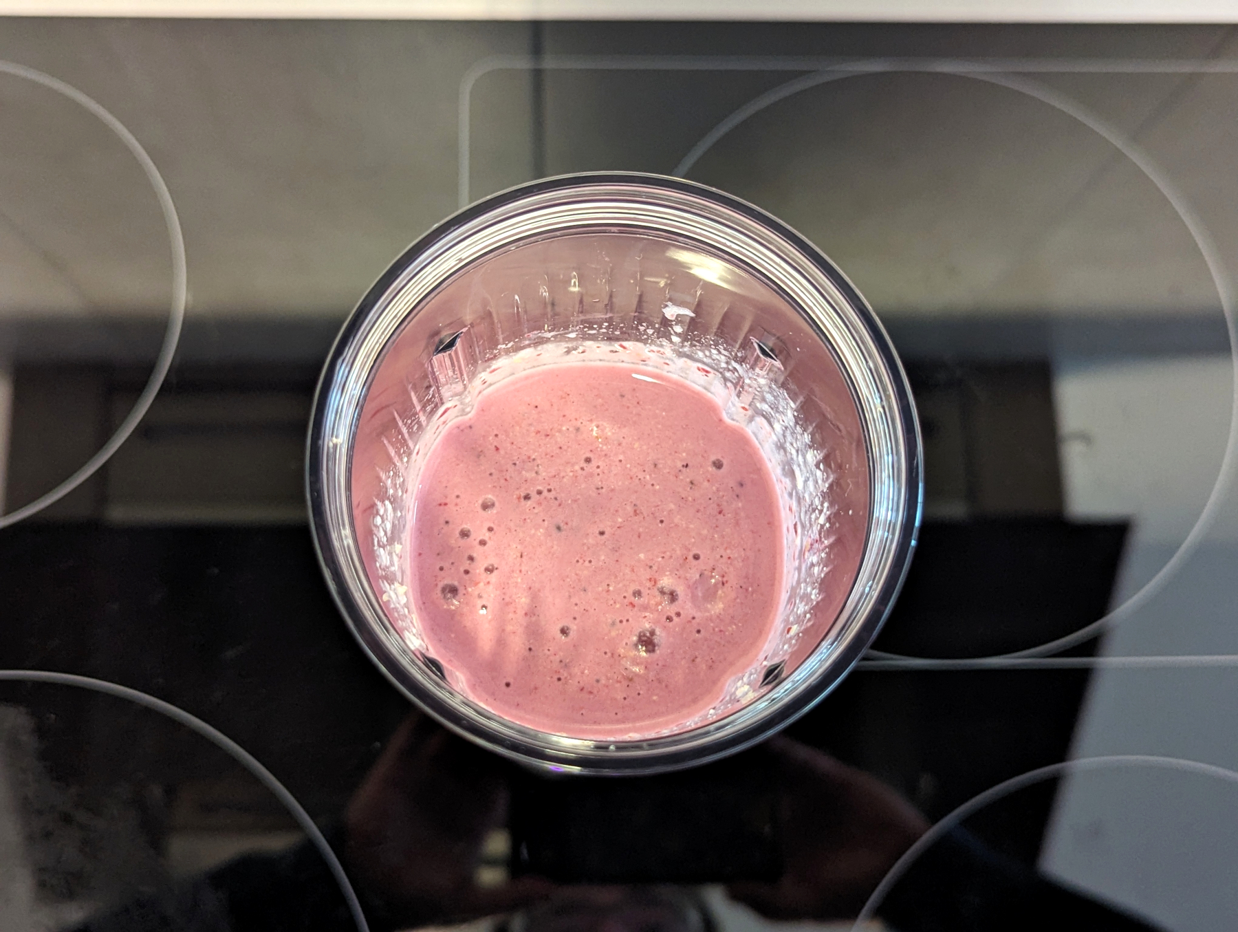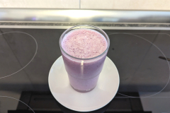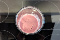 Im zweiten Test machen wir einen Trink-Smoothie aus frischer Milch, einer süßen Banane und Erdbeeren. Wieder lassen wir den Mixer 45 Sekunden arbeiten und betrachten anschließend das Ergebnis: Ein glatter Smoothie, in dem nur vereinzelt weiche Fruchtstückchen zu erkennen sind – sehr gut. Insgesamt ist die Leistung sowie die Ergebnisse zufriedenstellend. Ein paar Probleme gibt es mit gefrorenen Zutaten, obwohl der Hersteller mit der mühelosen Zerkleinerung von Eis wirbt. Ein zweiter Mixdurchgang hilft hier jedoch weiter.