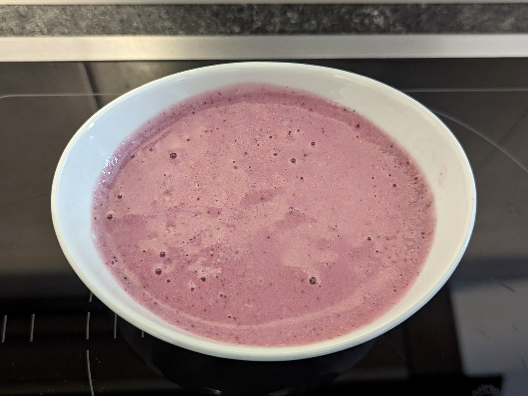 Im zweiten Test machen wir einen Trink-Smoothie aus frischer Milch, einer süßen Banane und Erdbeeren. Wieder lassen wir den Mixer 45 Sekunden arbeiten und betrachten anschließend das Ergebnis: Ein glatter Smoothie, in dem nur vereinzelt weiche Fruchtstückchen zu erkennen sind – sehr gut. Insgesamt ist die Leistung sowie die Ergebnisse zufriedenstellend. Ein paar Probleme gibt es mit gefrorenen Zutaten, obwohl der Hersteller mit der mühelosen Zerkleinerung von Eis wirbt. Ein zweiter Mixdurchgang hilft hier jedoch weiter.