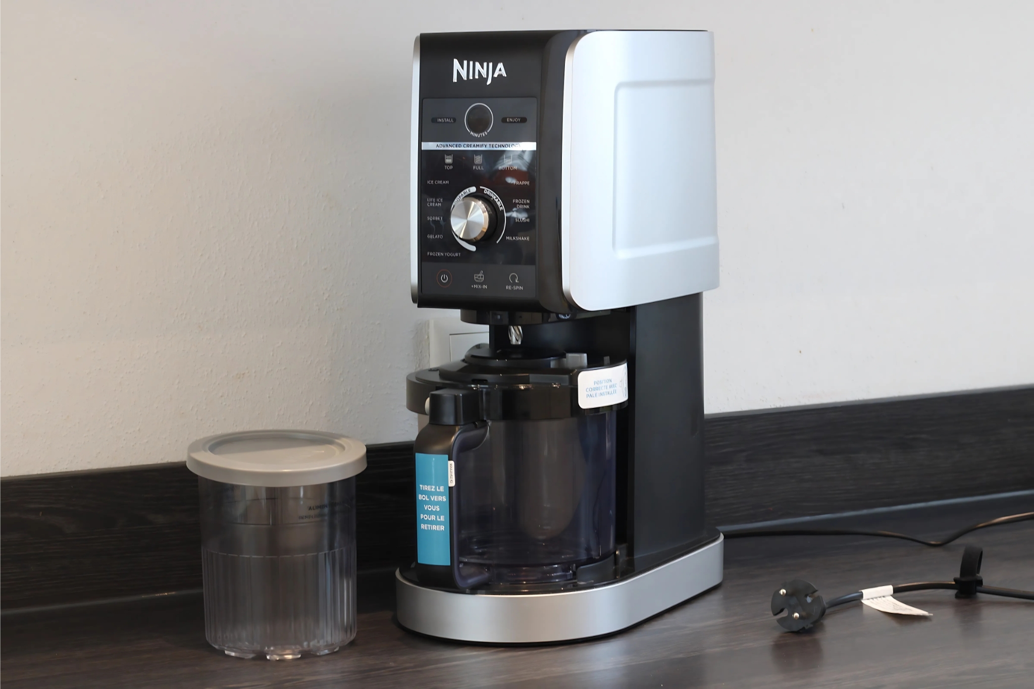 Die Handhabung der Maschine ist denkbar einfach: Der Becher wird in einen Außenbehälter gesetzt, der Rührarm im Deckel befestigt und das gesamte Set in die Maschine eingesetzt, bis es einrastet. Anschließend startet die Zubereitung. Jeder der drei mitgelieferten Becher fasst 680 Milliliter, was der Herstellung von Portionen für mehrere Personen entspricht. Im Vergleich zur Original-Creami ist die Portionsgröße um 50 Prozent größer, was insbesondere Familien und Haushalten mit hohem Verbrauch zugutekommt.