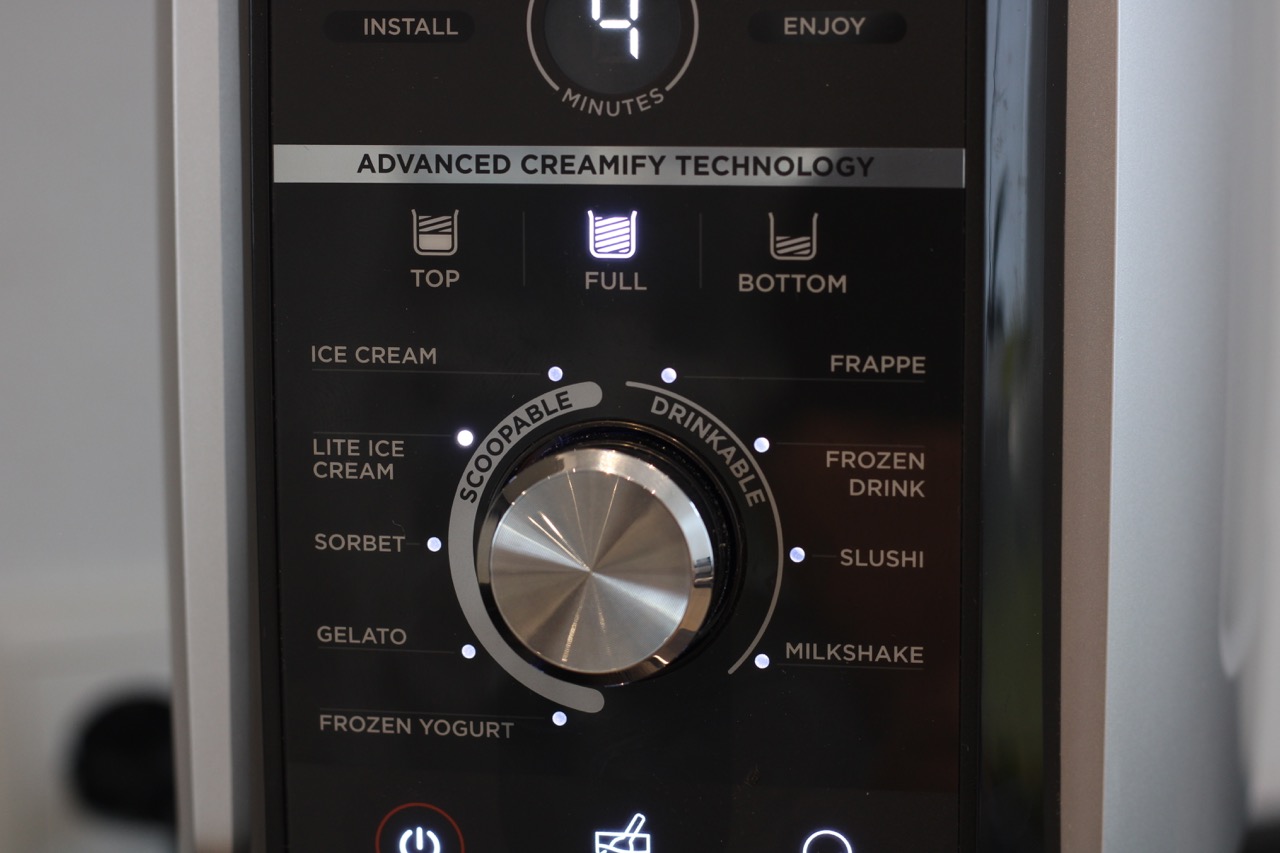 Die Maschine bietet zehn Zubereitungsprogramme, die in Scoopable und Drinkable unterteilt sind. Die Kategorie Scoopable umfasst löffelbare Desserts wie Ice Cream, Light Ice Cream, Sorbet, Gelato und Frozen Yoghurt. Die Drinkable-Programme beinhalten flüssigere Kreationen wie Frappe, Frozen Drinks, Slushies und Milchshakes. Besonders die Drinkable-Optionen erweitern die Einsatzmöglichkeiten im Vergleich zur Original-Creami deutlich.