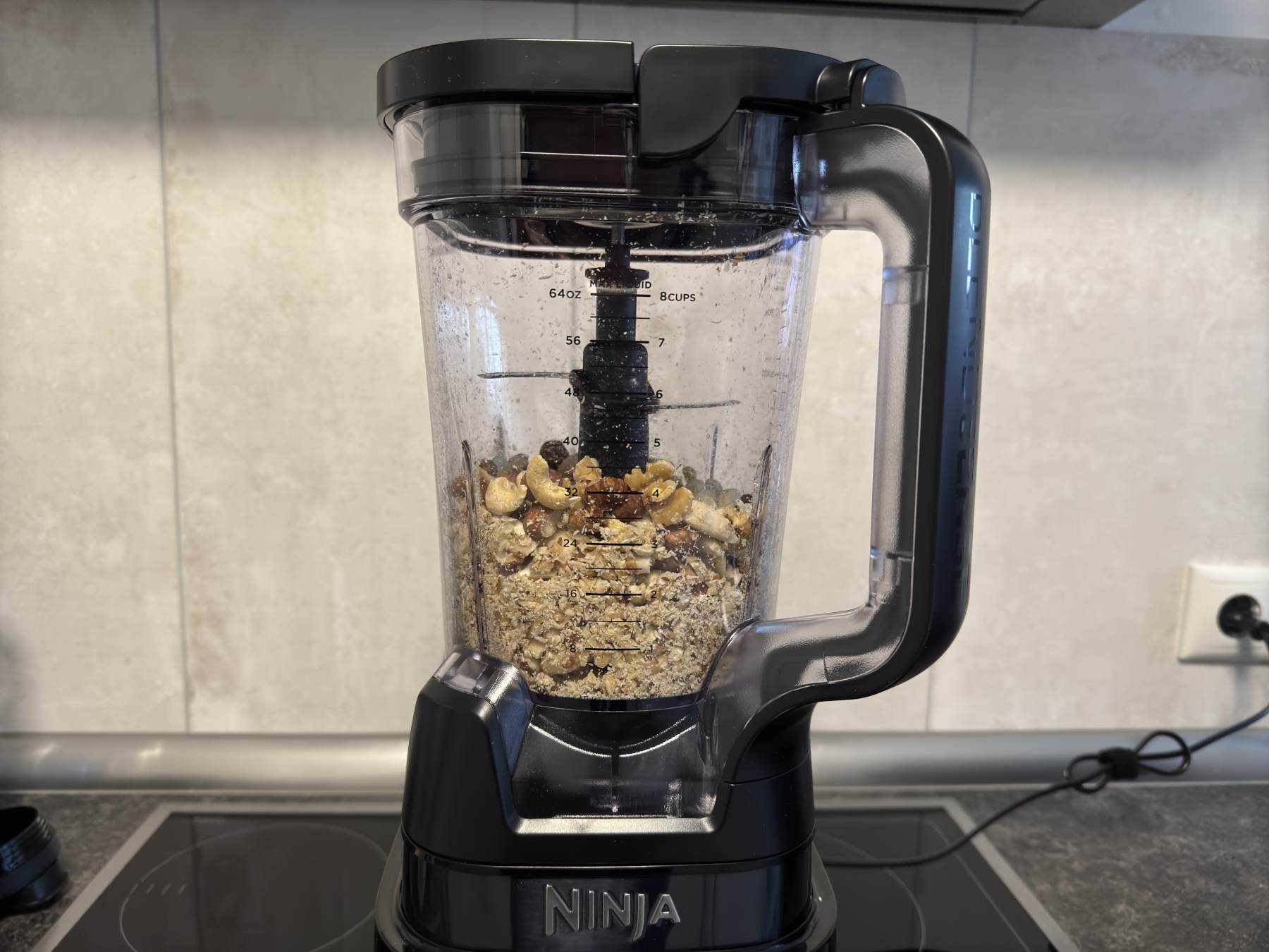 Mit einer Nennleistung von 1.200 Watt verspricht der Ninja Detect Power Blender Pro TB301EU ausreichend Power für alltägliche Aufgaben wie die Zubereitung von Smoothies oder Sorbets. In unserem Test starten wir mit einem von Ninja empfohlenen Rezept: Erdnussbutter. Hierzu geben wir 400 Gramm verschiedene Nüsse sowie 60 Gramm Öl in den großen 2,1-Liter-Mixbehälter und starten den automatischen Modus. Leider sind wir vom Ergebnis enttäuscht. Selbst nach zwei Durchgängen bleibt die Konsistenz weit hinter unseren Erwartungen zurück, und das Resultat weicht deutlich von dem in der Bedienungsanleitung gezeigten Beispiel ab. Hier zeigt der TB301EU Schwächen.