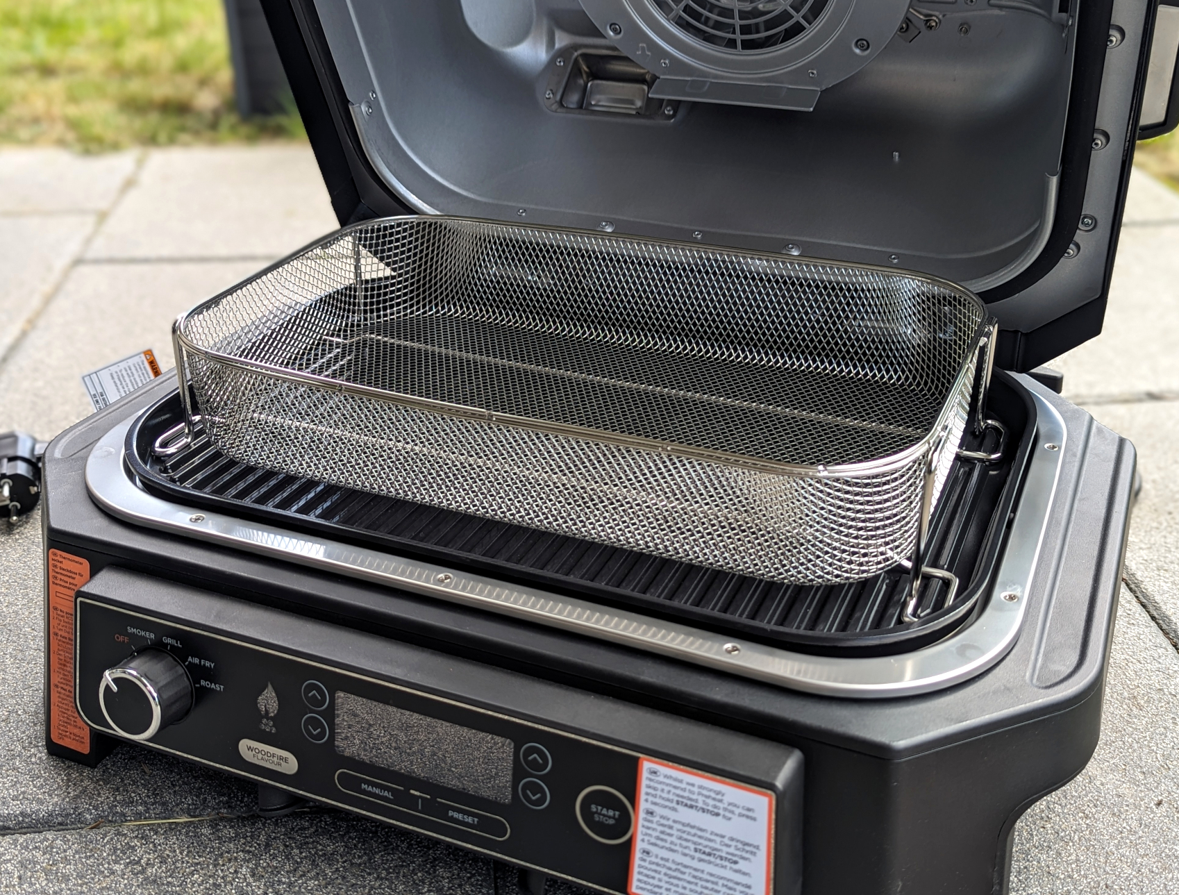 Die Kuppel erhitzt sich im Betrieb merklich und es besteht Verbrennungsgefahr. Dies ist jedoch aufgrund der enormen Temperaturen keine Kritik am Ninja. Viel wichtiger ist, dass der Griff zum Öffnen des Deckels nicht heiß wird. So lässt sich der Grill bedenkenlos öffnen – sehr gut.