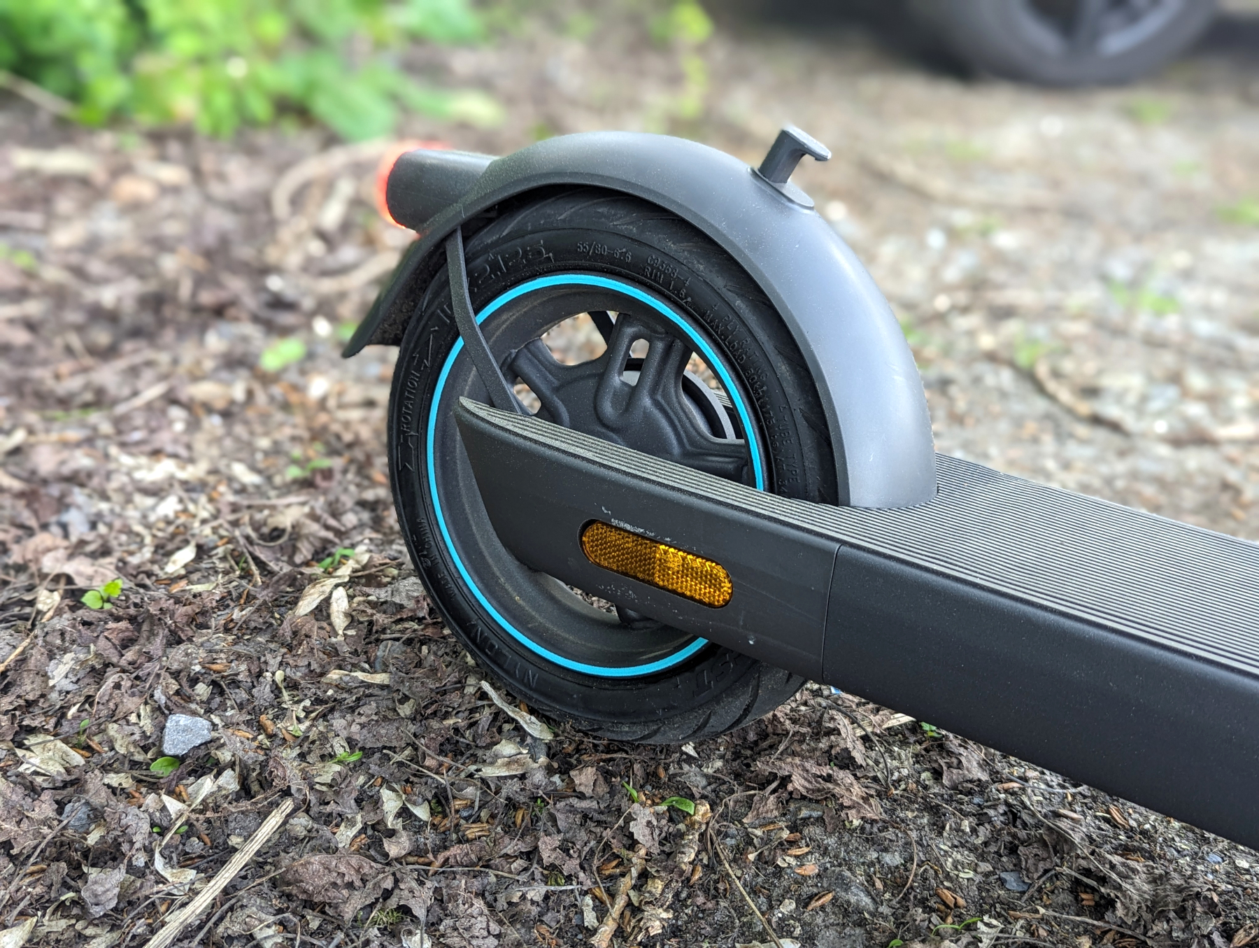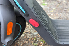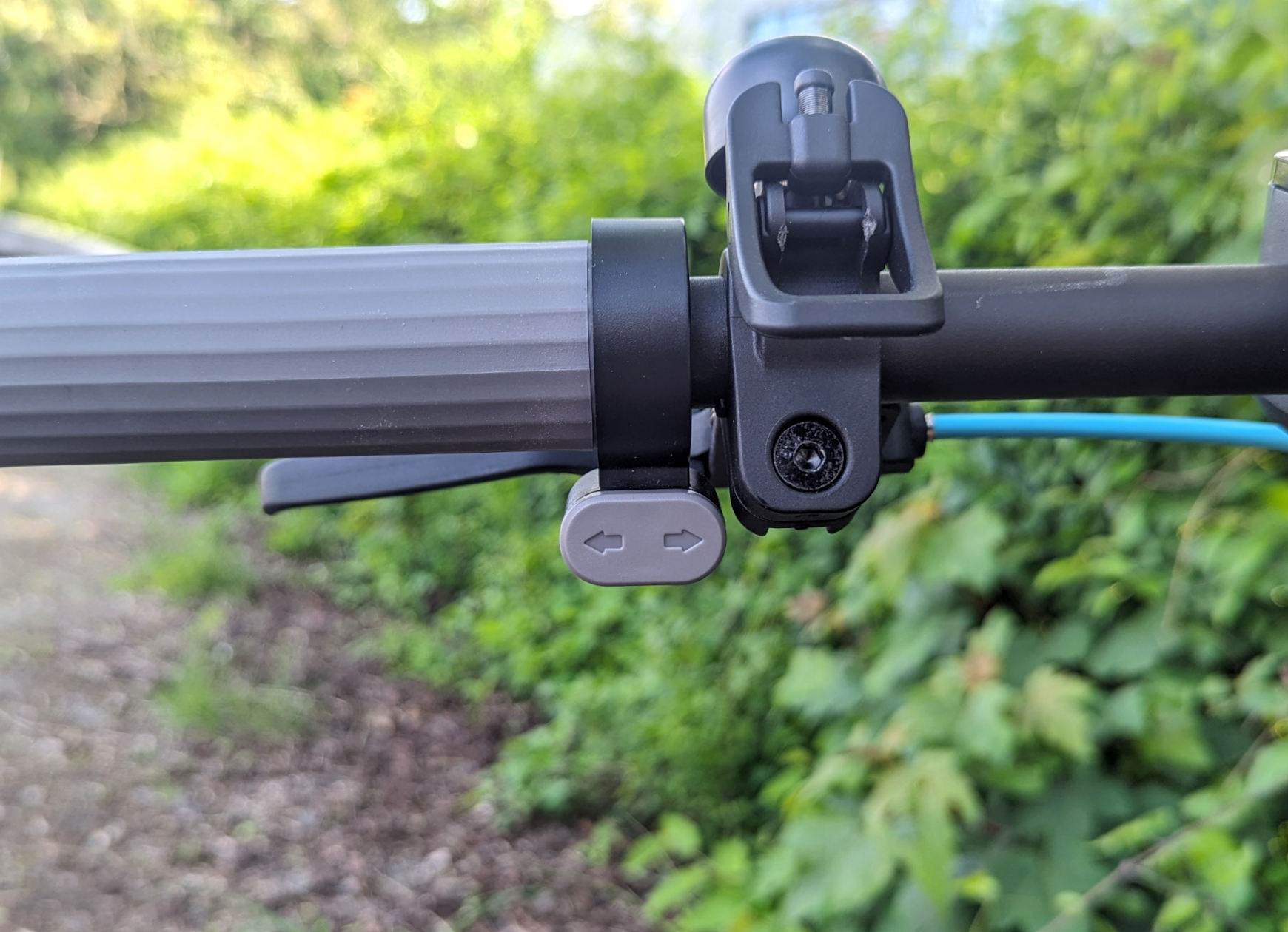 Ein Highlight sind die verbauten Blinker am linken und rechten Ende der Lenkstange. Blinker sind immer noch nicht Standard auf dem E-Scooter-Markt, erhöhen die Verkehrssicherheit aber enorm. Über einen Schalter unterhalb der Klingel schalten wir die Lichter ein- und aus. Dies funktioniert in der Praxis intuitiv und einfach – sehr gut.