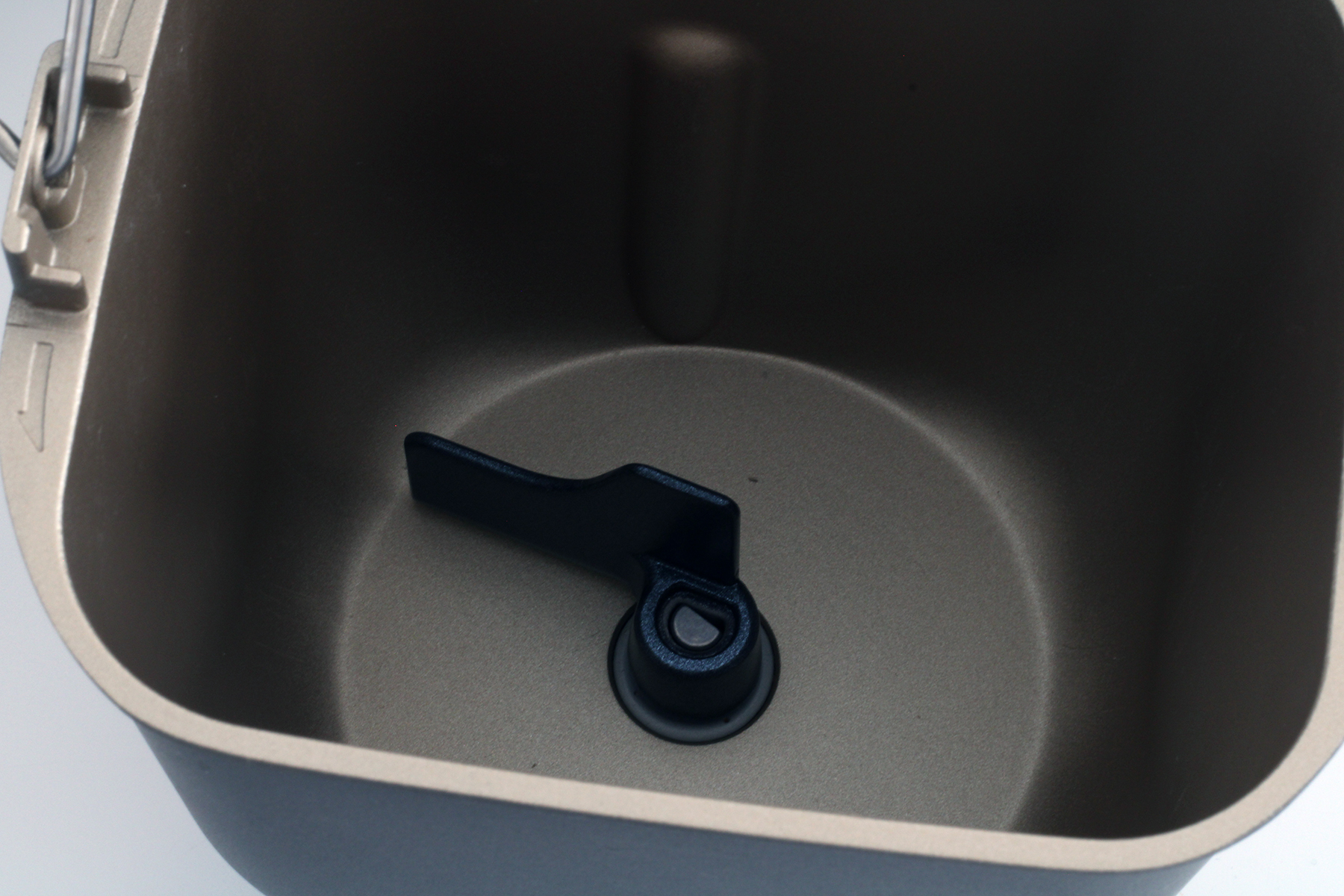 Die Backform ist mit ihren Maßen von 17 Zentimetern Breite, 13 Zentimetern Höhe und 13,7 Zentimetern Tiefe klein, was dem Single-Design des SD-PN100 entspricht. Die maximale Füllmenge wird im Brotbackprozess jedoch nicht ganz ausgeschöpft, da die Brote meist nur bis zu etwa zwei Drittel der Formhöhe aufgehen. Die Keramikbeschichtung der Backform bietet eine gute Antihaftwirkung: Das Brot bleibt nicht haften und lässt sich problemlos entnehmen – theoretisch. In der Praxis erweist sich der festsitzende Knethaken jedoch als Hindernis, da das Brot oft stark festhängt. Ein kräftiges Schütteln ist notwendig, um den Laib vollständig zu lösen, was gerade bei weichem Teig etwas Geduld erfordert.