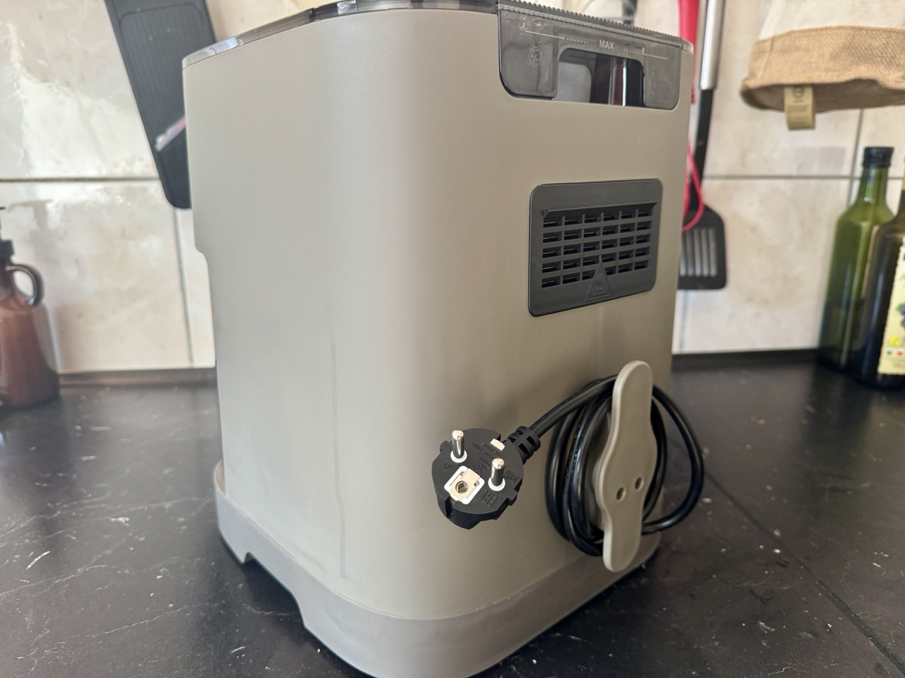 Die Abmessungen von 32 Zentimeter in der Höhe, 25 Zentimeter in der Breite, 39 Zentimetern in der Tiefe und das Gewicht von 4,8 Kilogramm machen die Fritteuse kompakt genug für kleinere Küchen, ohne dabei an Funktionalität zu verlieren. Trotz der Verwendung von Kunststoff als Hauptmaterial hinterlässt die Verarbeitung einen hochwertigen Eindruck. Die Antirutschfüße bieten einen stabilen Stand, obwohl sich das Gerät beim Herausziehen des Garkorbs leicht bewegen kann, wenn es nicht gehalten wird.