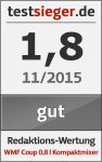 Der WMF Coup 0,8 l Kompaktmixer eignet sich vor allem für Singlehaushalte und Kleinfamilien, die gerne Smoothies und Shakes selber machen. Das Gerät überzeugt durch die kompakten Abmessungen und das schicke Design. Zudem hat uns die einfache Handhabung gefallen. Die Ergebnisse konnten uns jedoch nicht vollends überzeugen. Gerade mit größeren Stücken hat der Mixer so seine Probleme. Diese bleiben selbst bei der höchsten Geschwindigkeitsstufe häufig unzerkleinert im Glaskrug. Hier hätte ein etwas größeres Messer Abhilfe geschafft. Shakes und Smoothies gelingen jedoch problemlos und sind wunderbar cremig.