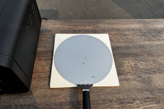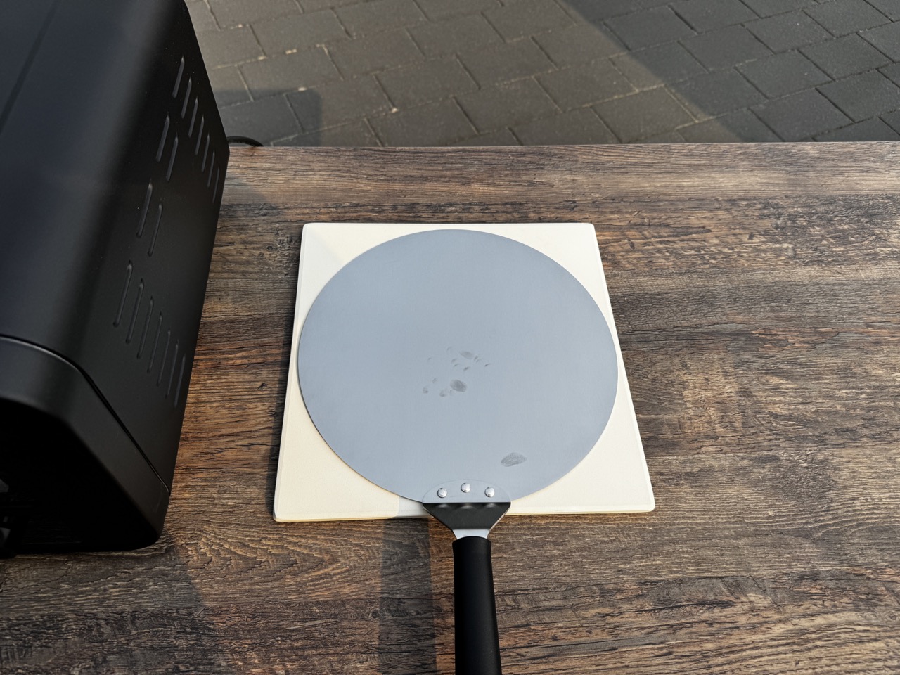 Ein Manko ist die geringe Helligkeit der Touch-Elemente. Bei starker Sonneneinstrahlung – selbst in Innenräumen – sind sie nur schwer lesbar. Das erschwert insbesondere das Ablesen des Vorheizstatus, der über das Display angezeigt wird. Positiv: Ein Pizzaschieber ist im Lieferumfang enthalten – ein Zubehörteil, das viele Konkurrenten nicht bieten. Ein Thermometer fehlt