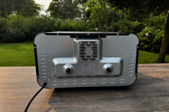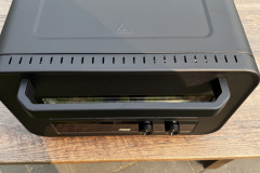 Beim Thema Sicherheit überzeugt der Ofen mit abgerundeten Kanten und einer Schutzblende an der Front, dennoch tritt an der Front wie erwähnt deutlich heiße Luft aus. Wer sich nähert, muss vorsichtig sein – insbesondere Kinder oder Personen mit empfindlicher Haut. Das Gehäuse selbst erwärmt sich stark, liegt aber auf dem für Pizzaöfen üblichen Niveau.