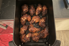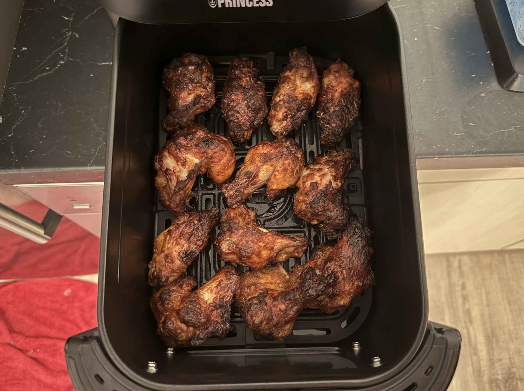Hingegen gelingt die Zubereitung von Chicken Wings hervorragend. Die voreingestellte Zeit und Temperatur des Hähnchen-Programms liefern ein saftiges und gleichmäßig gegartes Ergebnis. Auch bei der Lautstärke punktet die Fritteuse: Mit einem Geräuschpegel von nur 53 Dezibel arbeitet sie äußerst leise und stört nicht im Alltag.