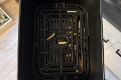 Die Bedienung des Airfryers gestaltet sich einfach, sobald man sich mit den Funktionen vertraut gemacht hat. Die Steuerung erfolgt über ein gut lesbares Touchscreen-Display mit Plus- und Minustasten zur Einstellung von Temperatur und Zeit. Eine Menü-Taste ermöglicht die Auswahl aus acht voreingestellten Programmen (Pommes frites, Backen, Fleisch, Fisch, Hähnchen, Schalentiere und Gemüse), die durch klare Symbole visualisiert werden. Diese Symbole sind jedoch keine direkten Bedientasten, was das Navigieren weniger intuitiv macht, da man sich durch die Programme „durchtippen“ muss. Und nicht direkt durch das Tippen auf das jeweilige Symbol, das Programm auswählen kann. Die Programme lassen sich durch eine manuelle Einstellung von Temperatur und Zeit individualisieren. Der Temperaturbereich reicht von 80 bis 200 Grad Celsius, was für viele Gerichte ausreichend ist. Allerdings wäre ein etwas höherer Temperaturbereich wünschenswert, insbesondere für knusprige Ergebnisse.