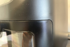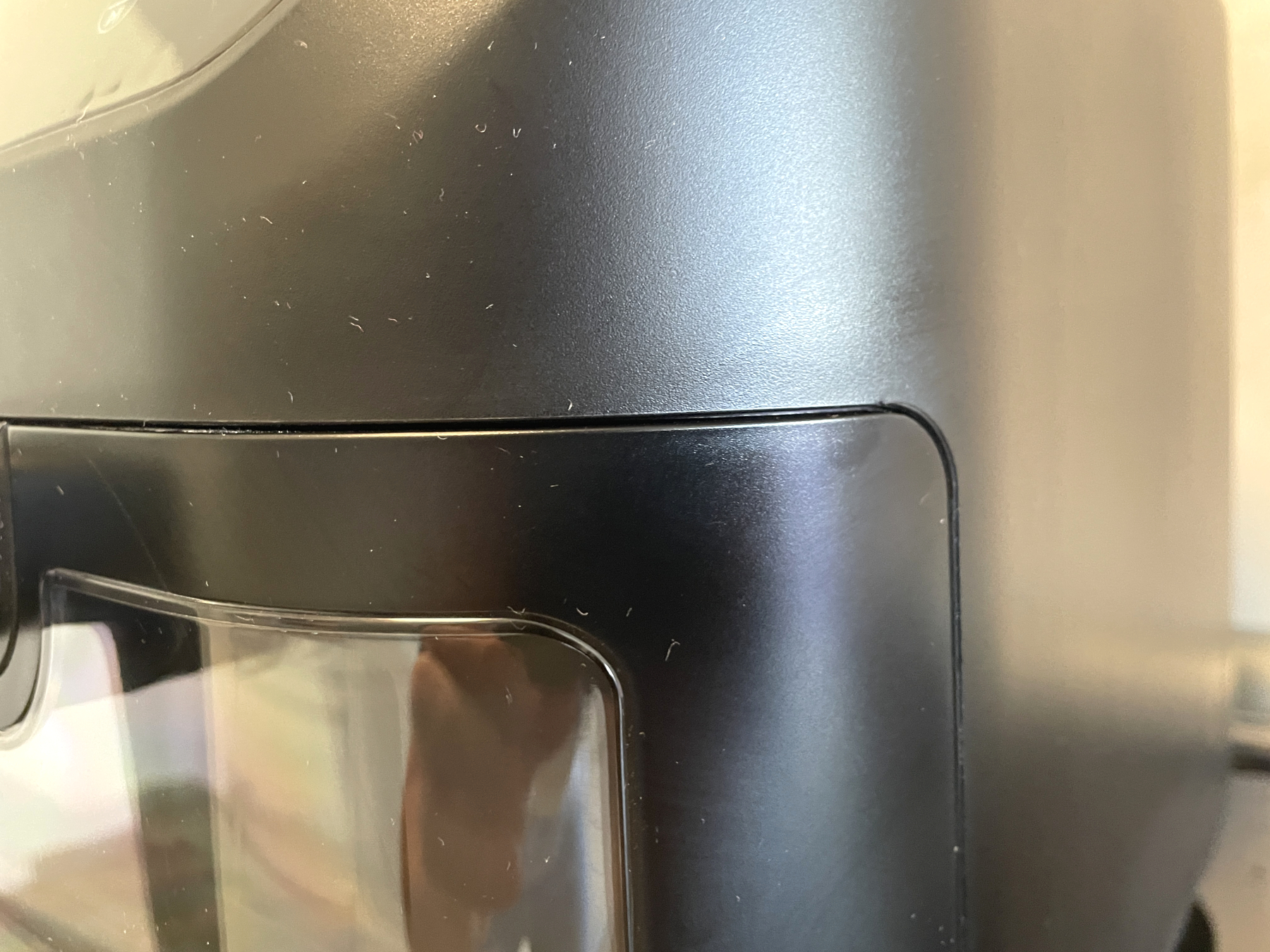 Die Verarbeitung ist insgesamt in Ordnung. Der verwendete Kunststoff wirkt zwar nicht besonders hochwertig, im Preissegment von unter 150 Euro aber vertretbar. Positiv hervorzuheben sind der robuste Frittierkorb und der beschichtete Grillrost aus Metall, die beide sauber verarbeitet und stabil sind. Die Spaltmaße sind erfreulich gleichmäßig, und die einzelnen Bauteile sind gut miteinander verbunden. Störend sind sichtbare Produktionsrückstände, die man vor der ersten Nutzung manuell entfernen muss. Dies trübt den ansonsten ordentlichen Gesamteindruck.