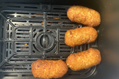 Für den zweiten Test bereiten wir Hackfleischbällchen zu, für die wir das entsprechende Programm auswählen. Nach der vorgegebenen Garzeit präsentiert sich das Hackfleisch mit einer schönen, gleichmäßigen Bräunung und ist durch und durch gar. Den Härtetest stellen wir der Fritteuse mit selbstgeschnittenen Pommes. Hier verlängert sich die Zubereitungszeit auf 40 Minuten, was bei frischen Zutaten und in Heißluftfritteusen üblich ist. Trotz der schweren Herausforderung liefert das Gerät ein hervorragendes Ergebnis: Die Pommes sind annähernd gleichmäßig gegart und knusprig, was viele andere Modelle nicht schaffen – sehr ordentlich.