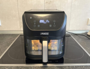Mit einem Fassungsvermögen von 8 Litern und einer Breite von 25 Zentimetern soll der Princess 182258 SlimFry besonders kompakt sein und gleichzeitig viel Fassungsvermögen bieten. Ob der Hersteller sein Versprechen halten kann und wie sich die Heißluftfritteuse im Alltag schlägt, verraten wir in unserem Praxistest.