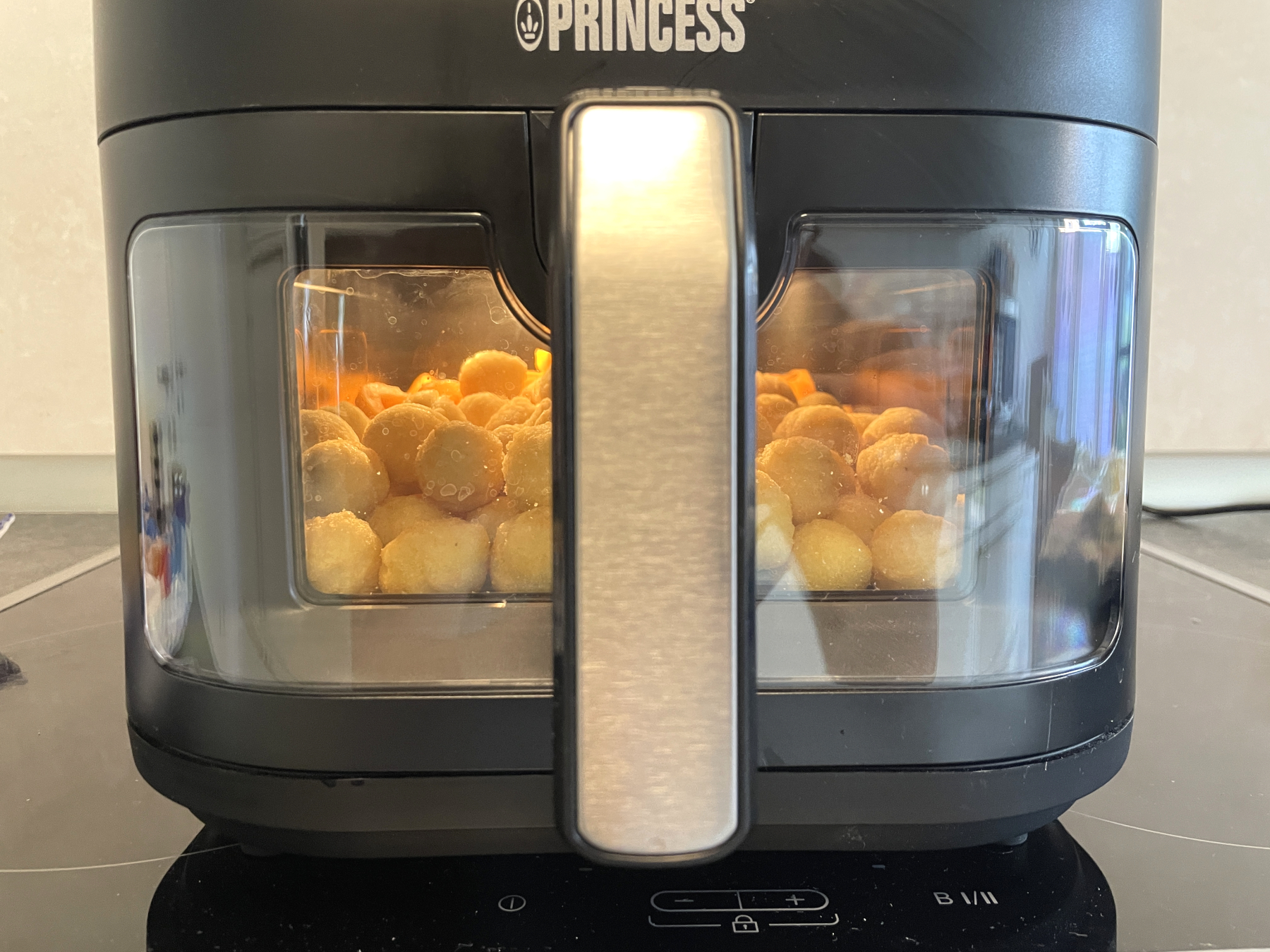 Mit einem großzügigen Fassungsvermögen von 8 Litern bietet der Princess SlimFry mehr als genug Platz, um große Portionen zuzubereiten – ideal für Familien oder größere Gruppen. Wir können bis zu 2 Kilogramm Pommes oder andere Produkte gleichzeitig frittieren. Damit übertrifft das Gerät in dieser Hinsicht sogar so manchen Backofen.