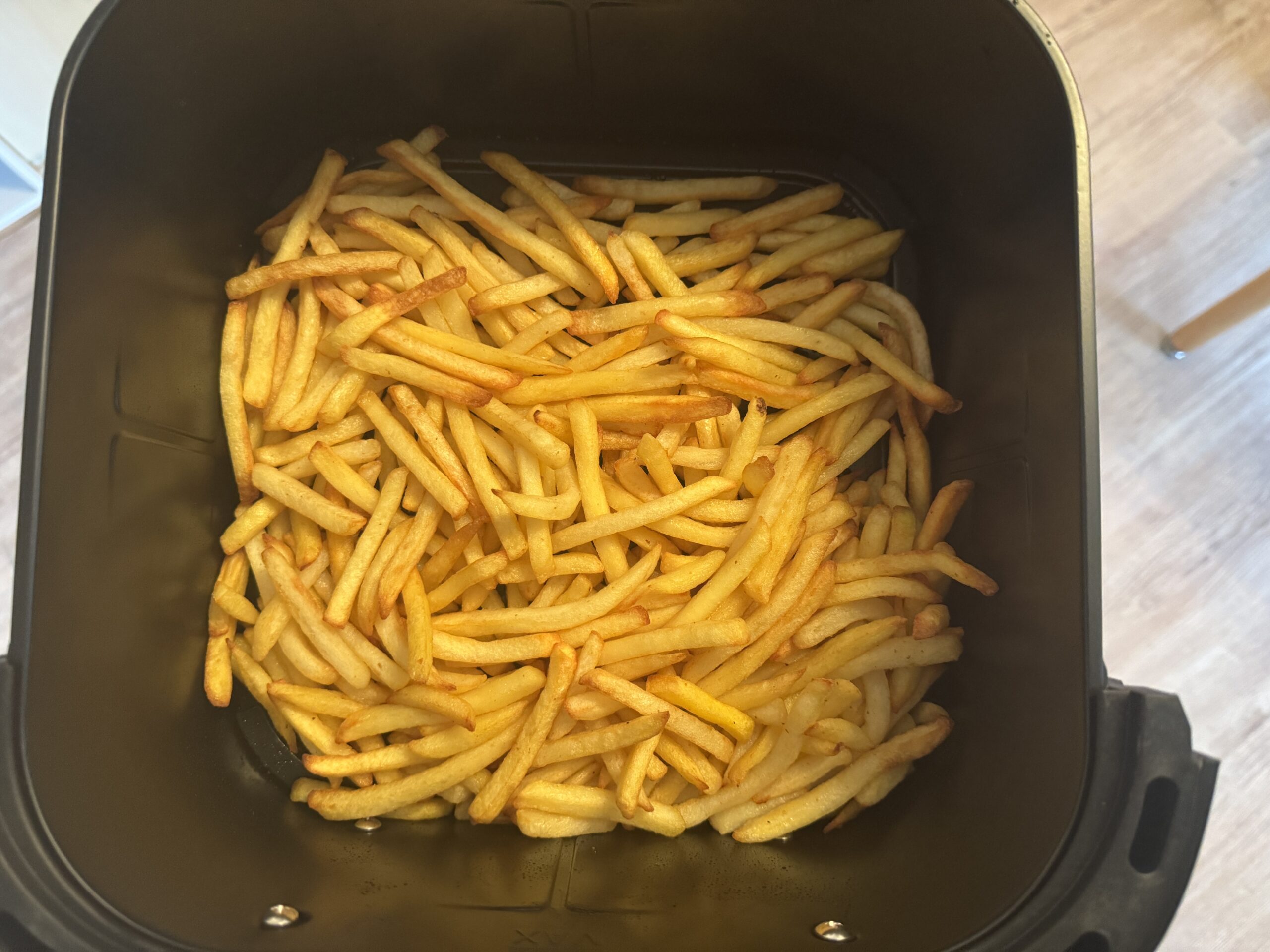 In der Praxis zeigt sich die Princess 182280 durchwachsen. Positiv fällt auf, dass sowohl frische Kartoffelstreifen als auch Tiefkühlpommes gleichmäßig gegart werden – ohne heiße oder kalte Stellen. Dennoch fehlt es den Ergebnissen an Knusprigkeit, selbst bei längerer Garzeit. Die goldene Färbung täuscht über den weichen Biss hinweg. Eine höhere Maximaltemperatur könnte hier Abhilfe schaffen.